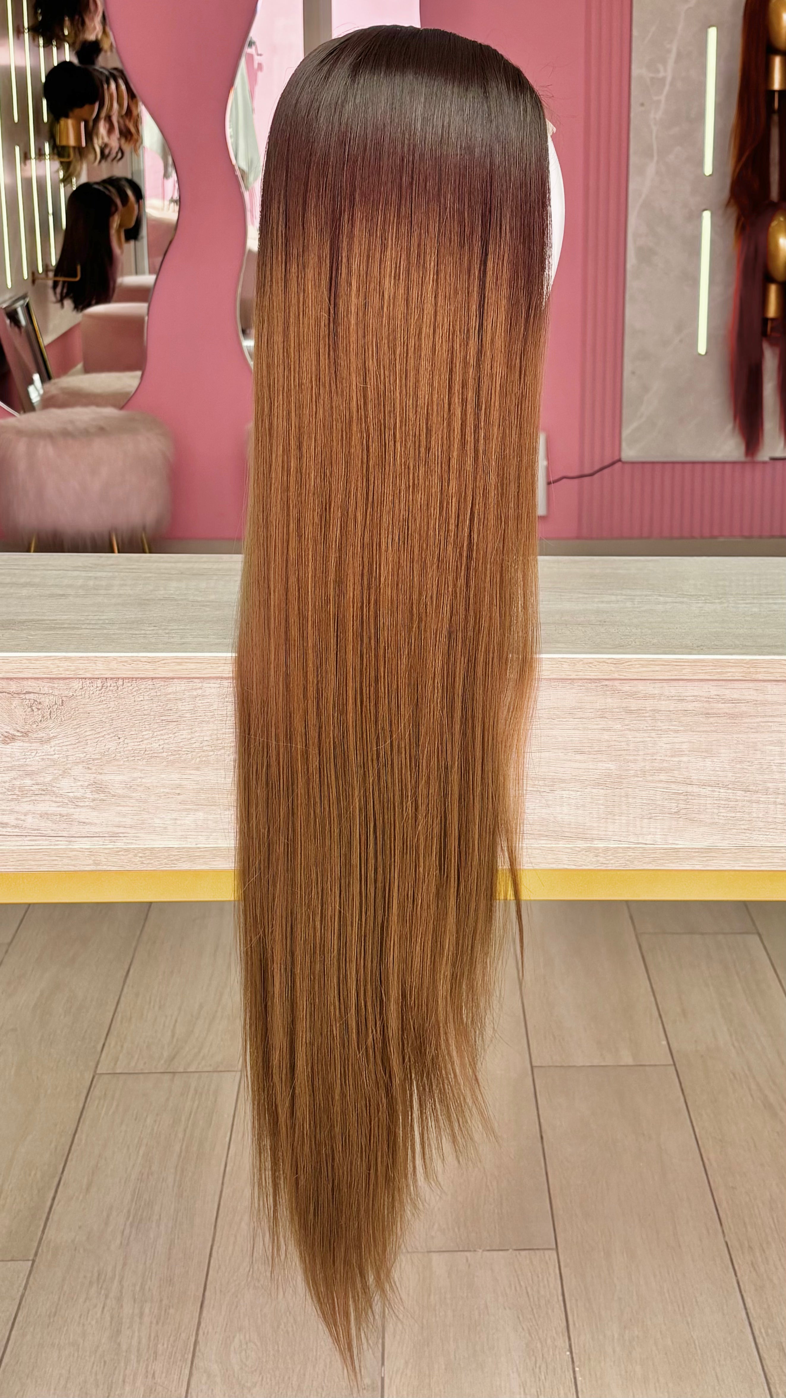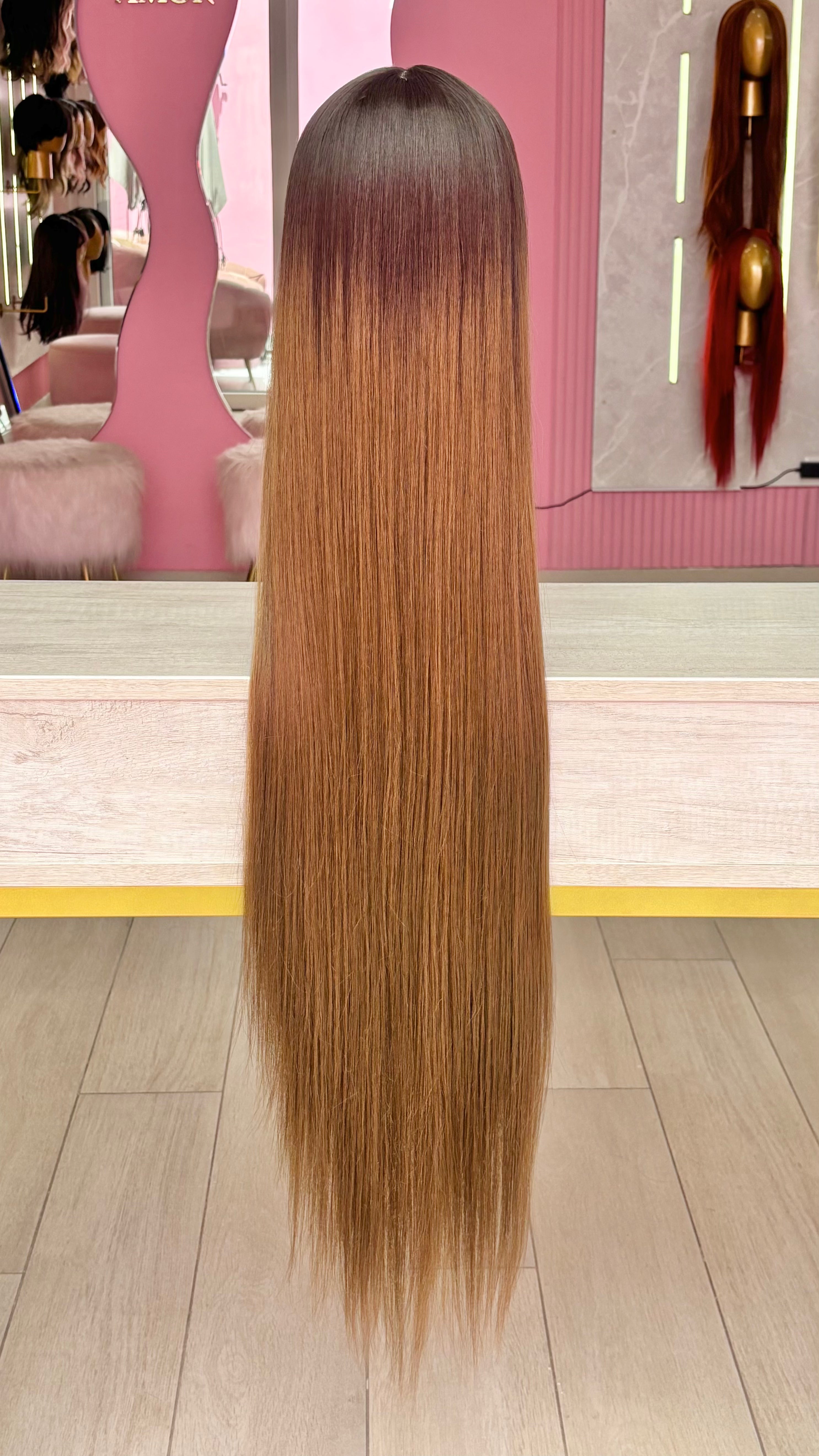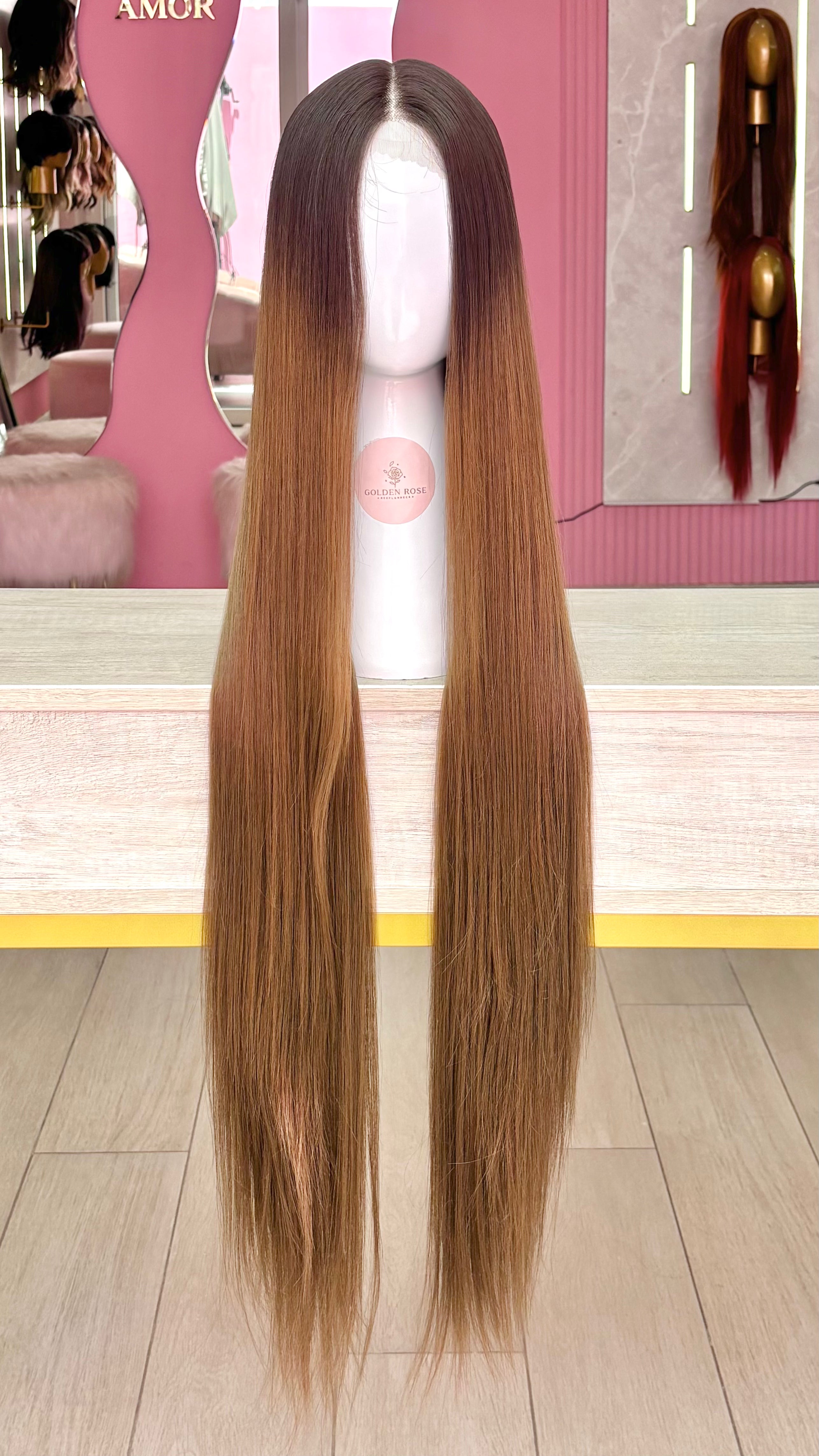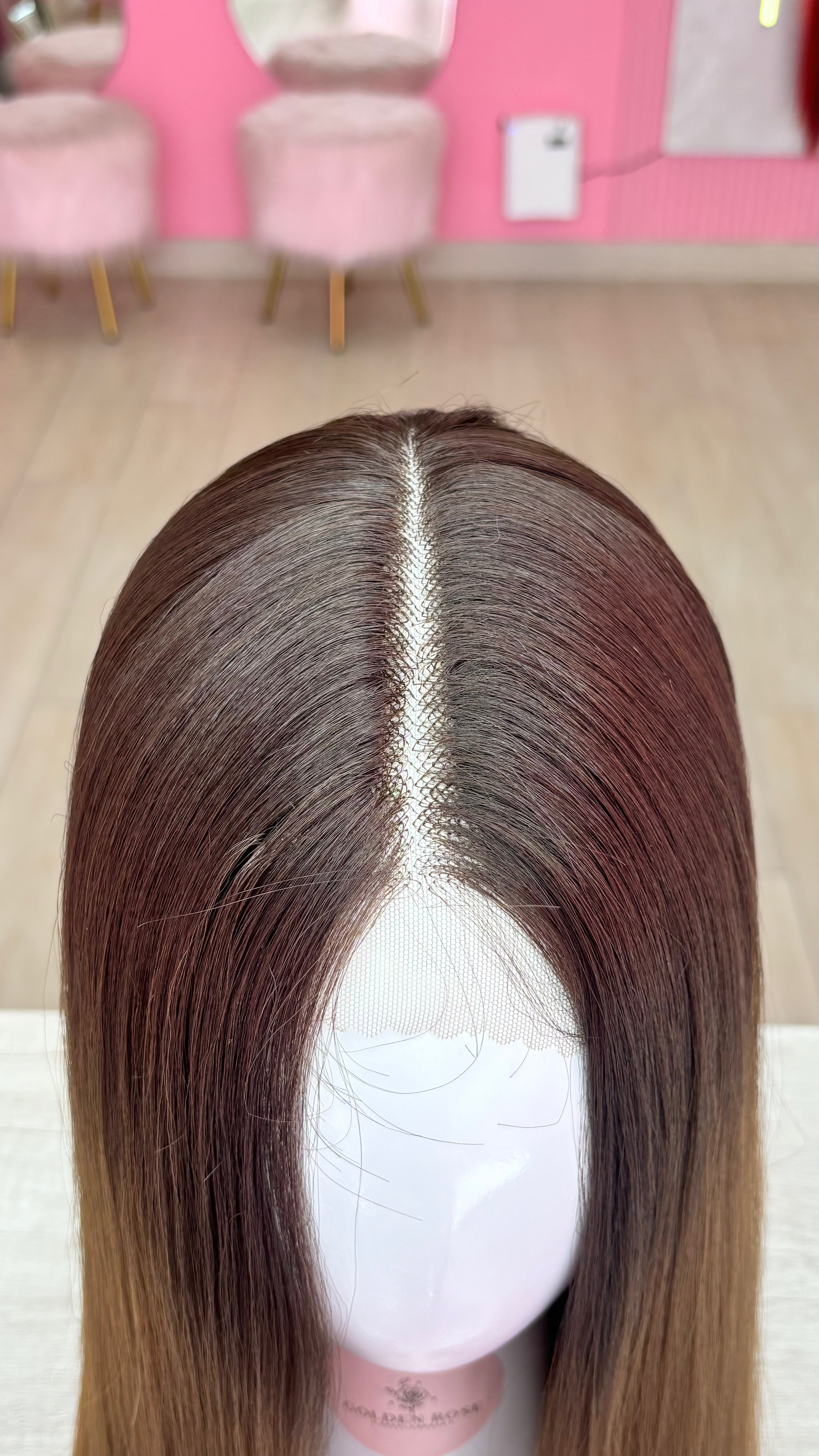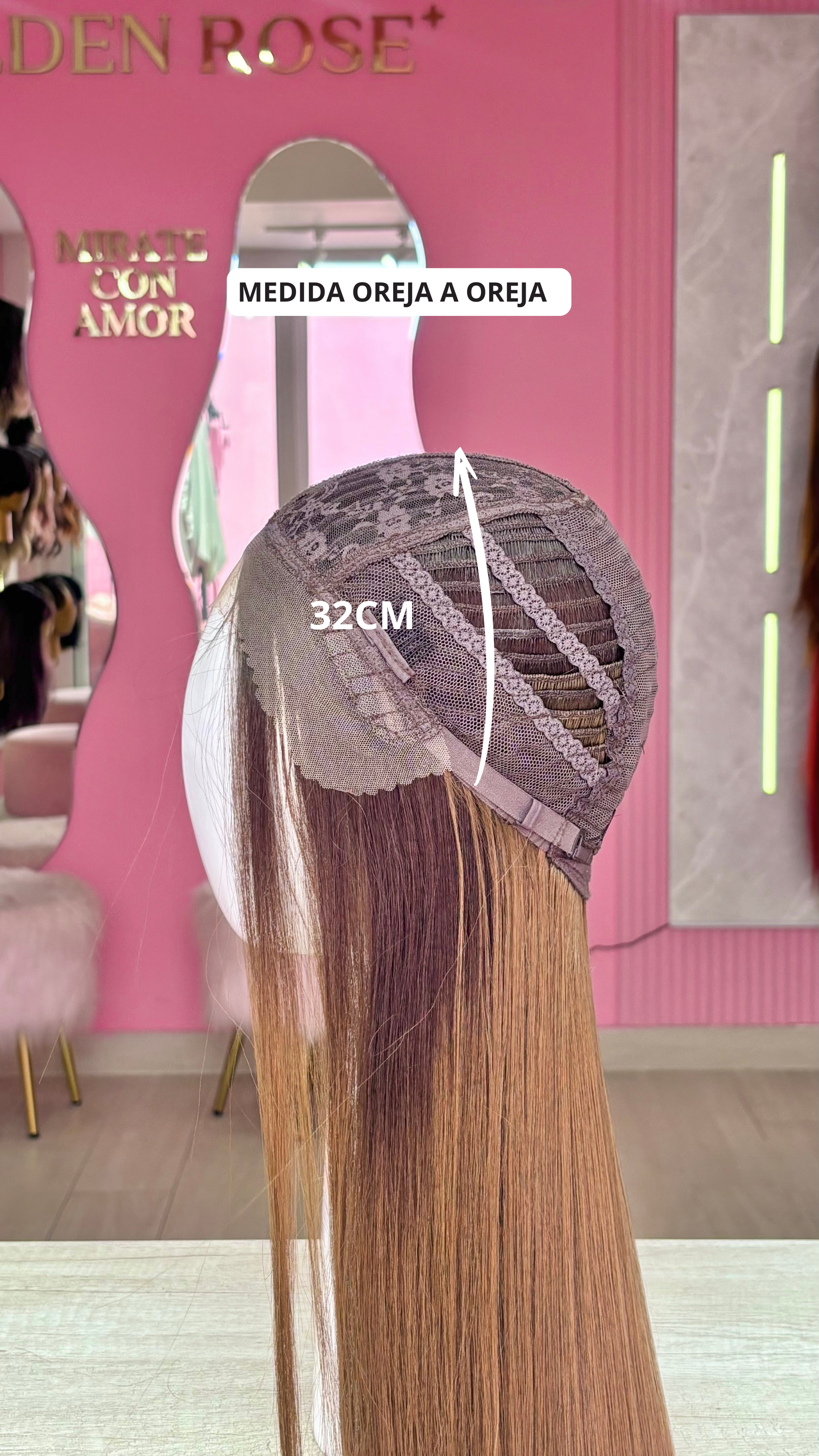 La peluca Amanda es un producto de nuestra línea "Golden" con gorro de costura lace front raíz fija. Este producto cuenta con un regulador de contorno para ajustar el tamaño de la peluca si la persona lo requiere, además de 3 peinetas internas para asegurar mejor el cabello (en caso se tenga). El cabello empleado para este postizo es del material modacrílico (un tipo de fibra acrílica). Esta fibra es resistente al agua y al calor, no tiene brillo como el cabello de muñeca, sino que se asemeja a un cabello natural. Asimismo, es suave y manejable, se puede alisar, ondular y lavar. Se recomienda su uso para ocasiones esporádicas con la finalidad de alargar su tiempo de vida.