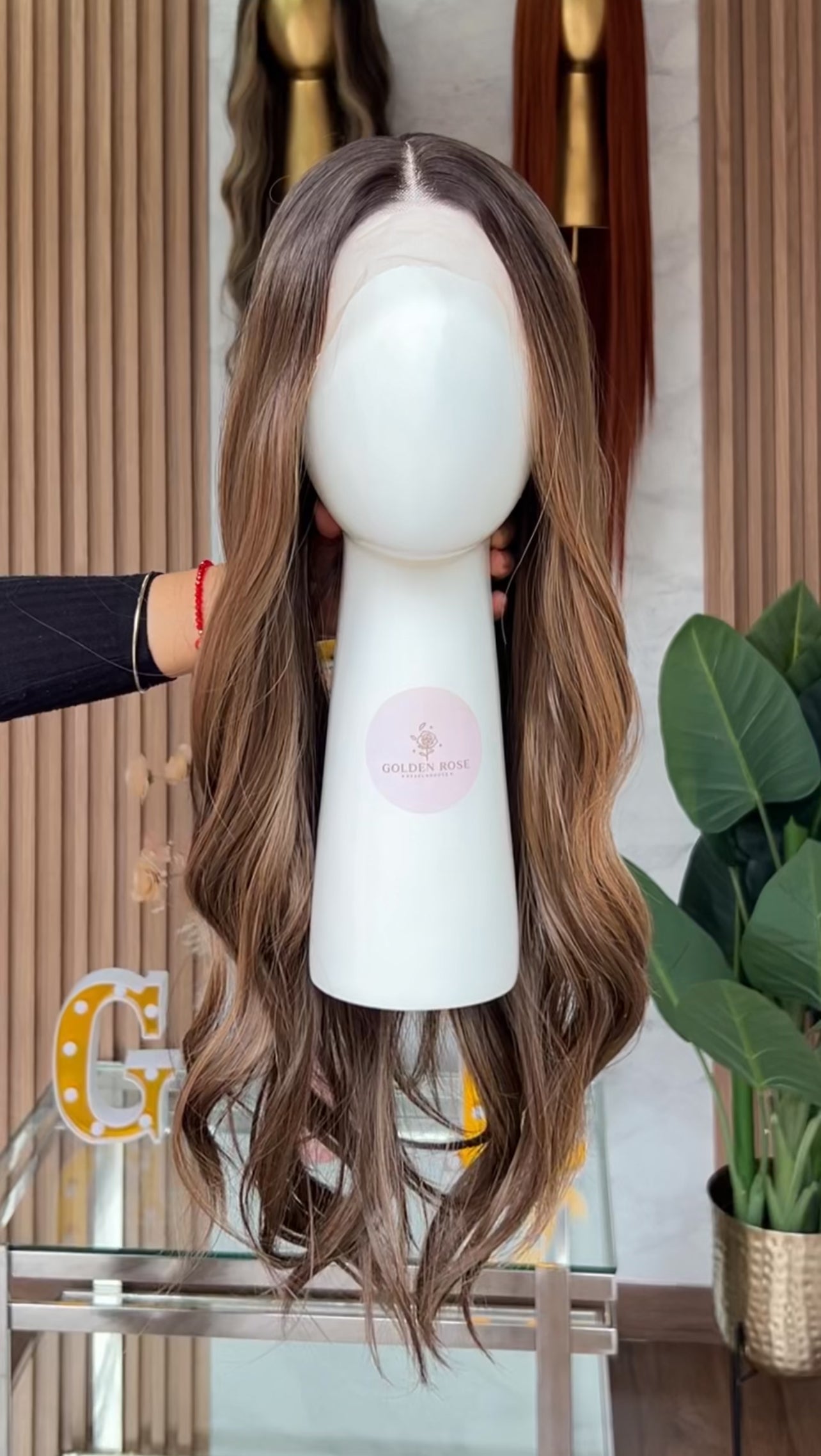 La peluca Mayra es un producto de nuestra línea "Golden" con gorro de costura lace front raíz fija. Este producto cuenta con un regulador de contorno para ajustar el tamaño de la peluca si la persona lo requiere, además de 3 peinetas internas para asegurar mejor el cabello (en caso se tenga). El cabello empleado para este postizo es del material modacrílico (un tipo de fibra acrílica). Esta fibra es resistente al agua y al calor, no tiene brillo como el cabello de muñeca, sino que se asemeja a un cabello natural. Asimismo, es suave y manejable, se puede alisar, ondular y lavar. Se recomienda su uso para ocasiones esporádicas con la finalidad de alargar su tiempo de vida.