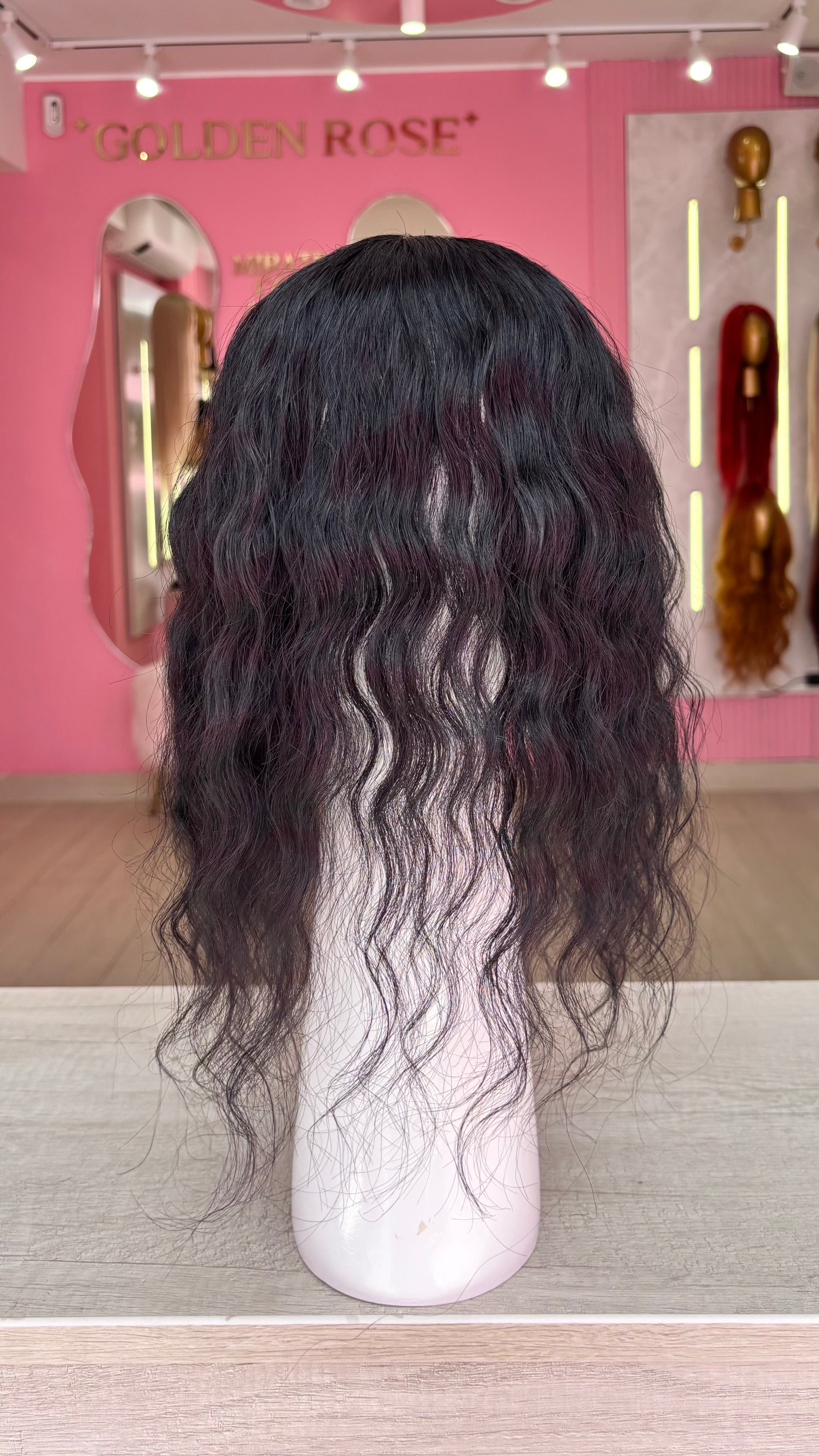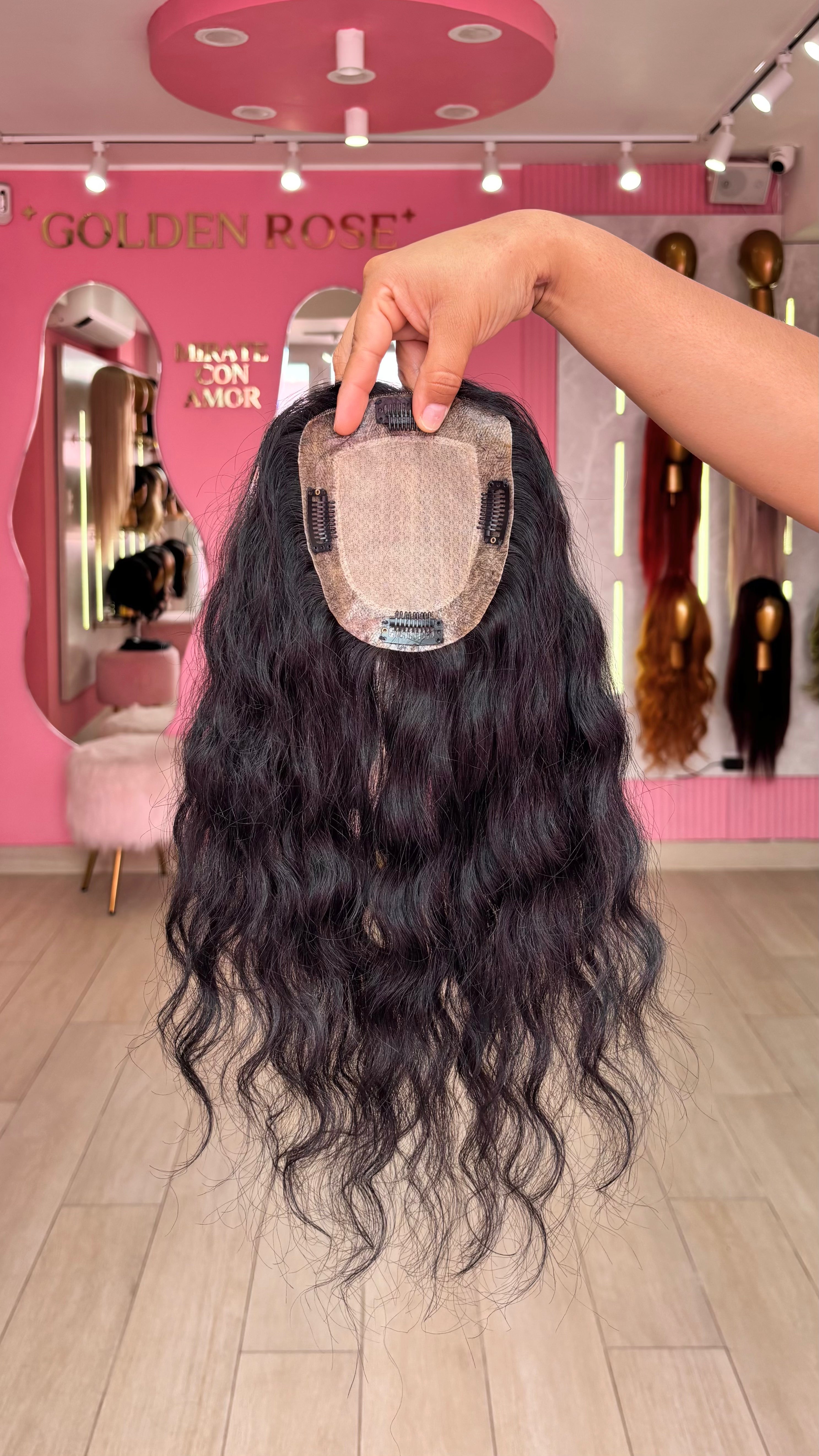 El topper Ana es un producto de nuestra línea "Platinum", con raíz movible cuero cabelludo. El cabello empleado para este postizo es 100% humano; por lo cual, es apto para uso diario. El cabello es suave y manejable; además se puede ondular, lavar, cepillar y teñir de tonos más oscuros del que viene de fábrica. No se recomienda decolorar, pues tiene un procedimiento previo de ondulación permanente. En caso se decolore, el cabello se puede maltratar y/o resecar. Asimismo, para definir mejor los rizos, puede usar crema de peinar o ruleros. Si desea que el cabello se vea liso, puede hacerle un cepillado con secadora y peine redondo. Se aconseja no emplear tenaza o plancha porque puede resecar el cabello.