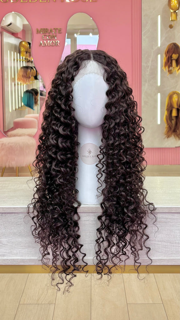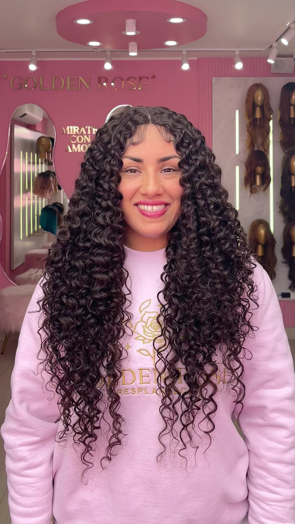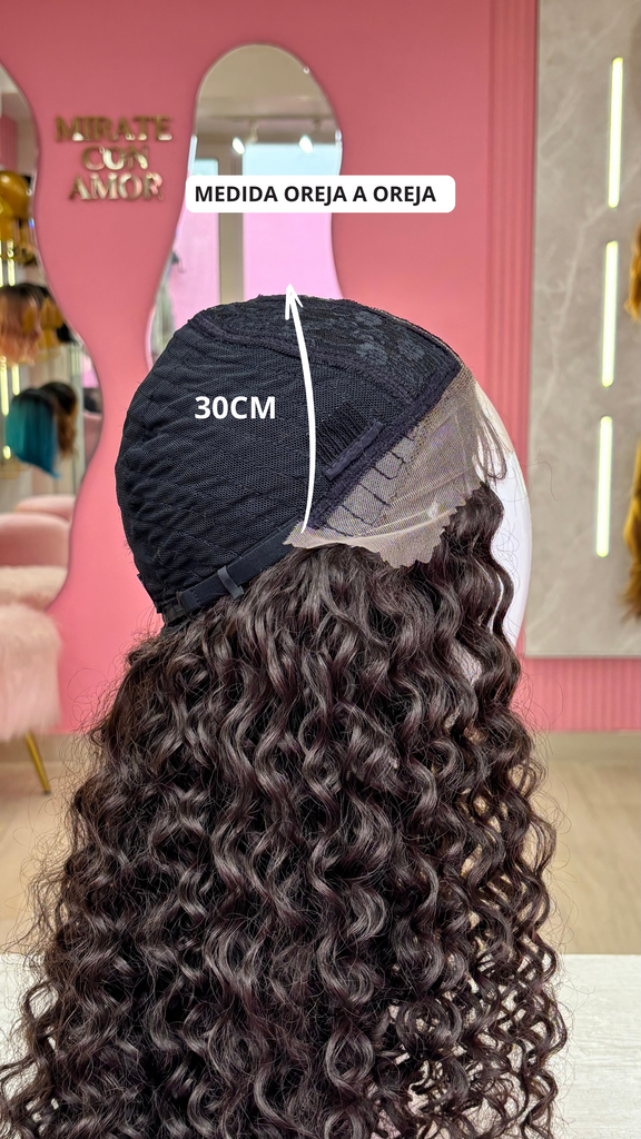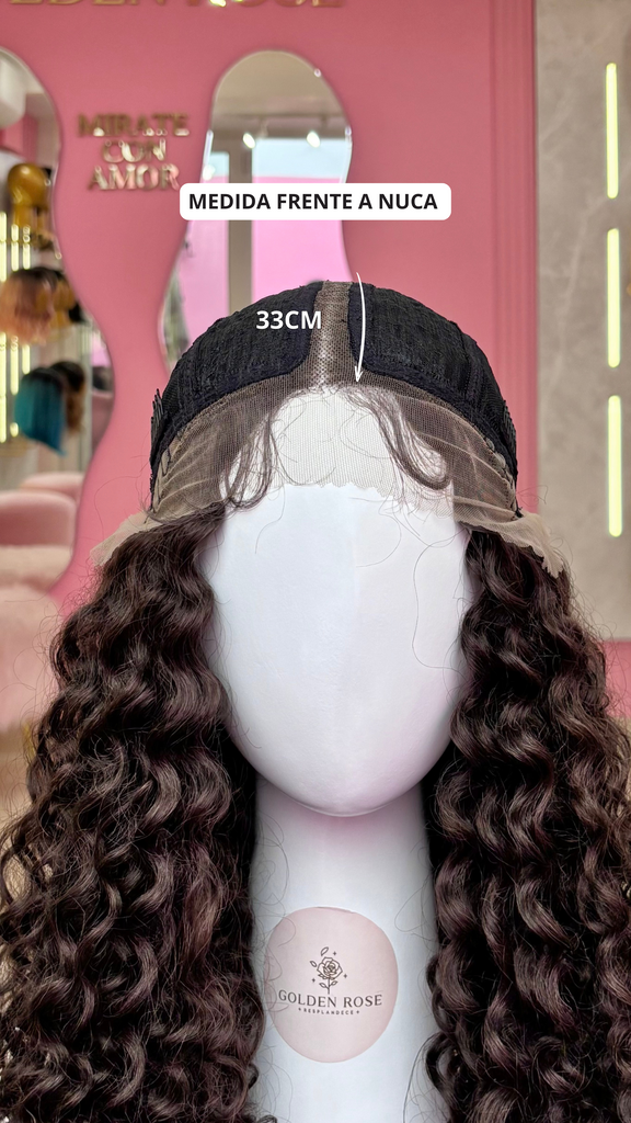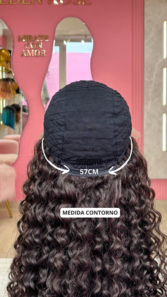 La peluca Leticia es un producto de nuestra línea "Golden" con gorro de costura lace front raíz fija. Este producto cuenta con un regulador de contorno para ajustar el tamaño de la peluca si la persona lo requiere, además de 3 peinetas internas para asegurar mejor el cabello (en caso se tenga). El cabello empleado para este postizo es del material modacrílico (un tipo de fibra acrílica). Esta fibra es resistente al agua y al calor, no tiene brillo como el cabello de muñeca, sino que se asemeja a un cabello natural. Asimismo, es suave y manejable, se puede alisar, ondular y lavar. Se recomienda su uso para ocasiones esporádicas con la finalidad de alargar su tiempo de vida.
