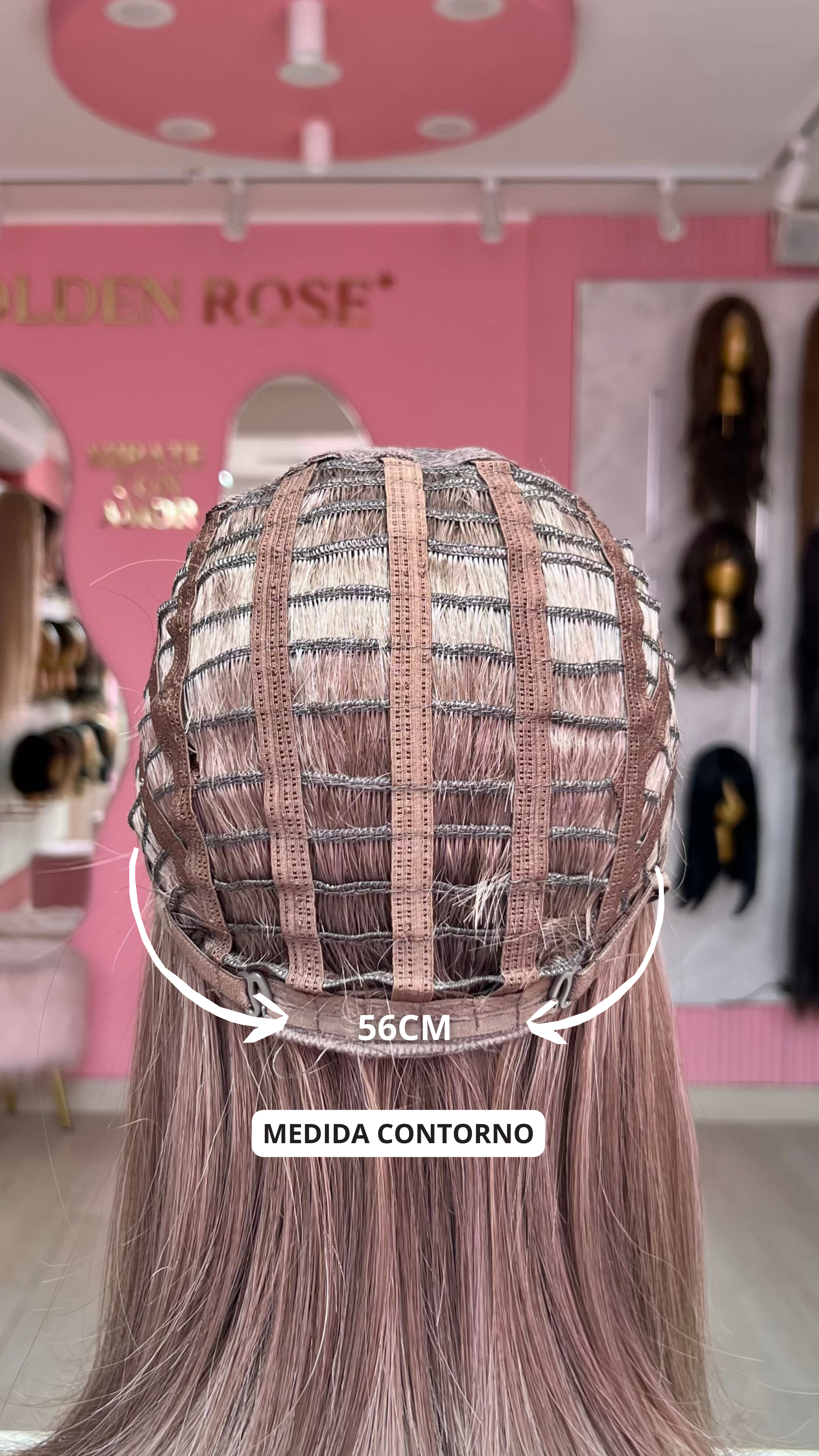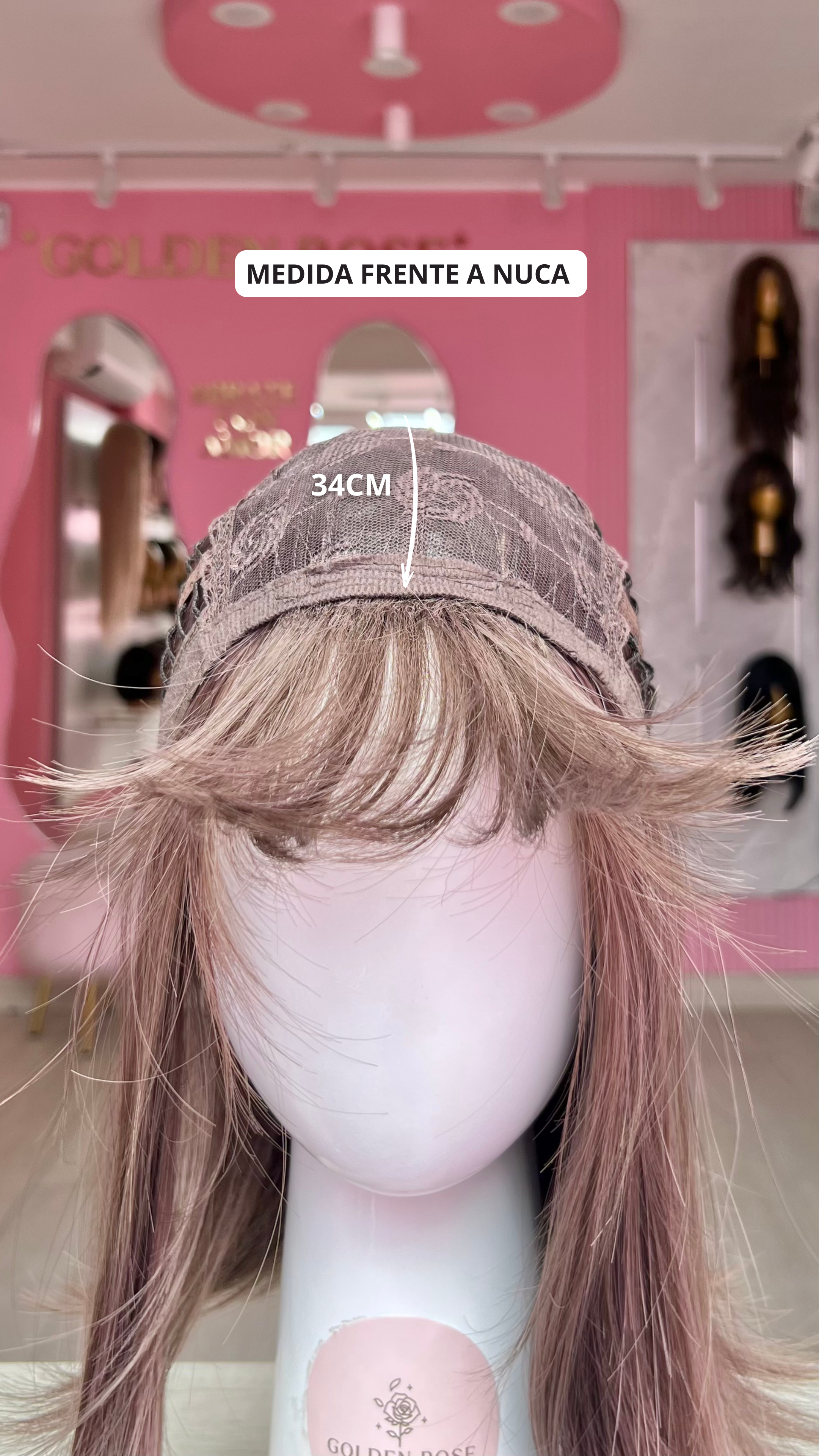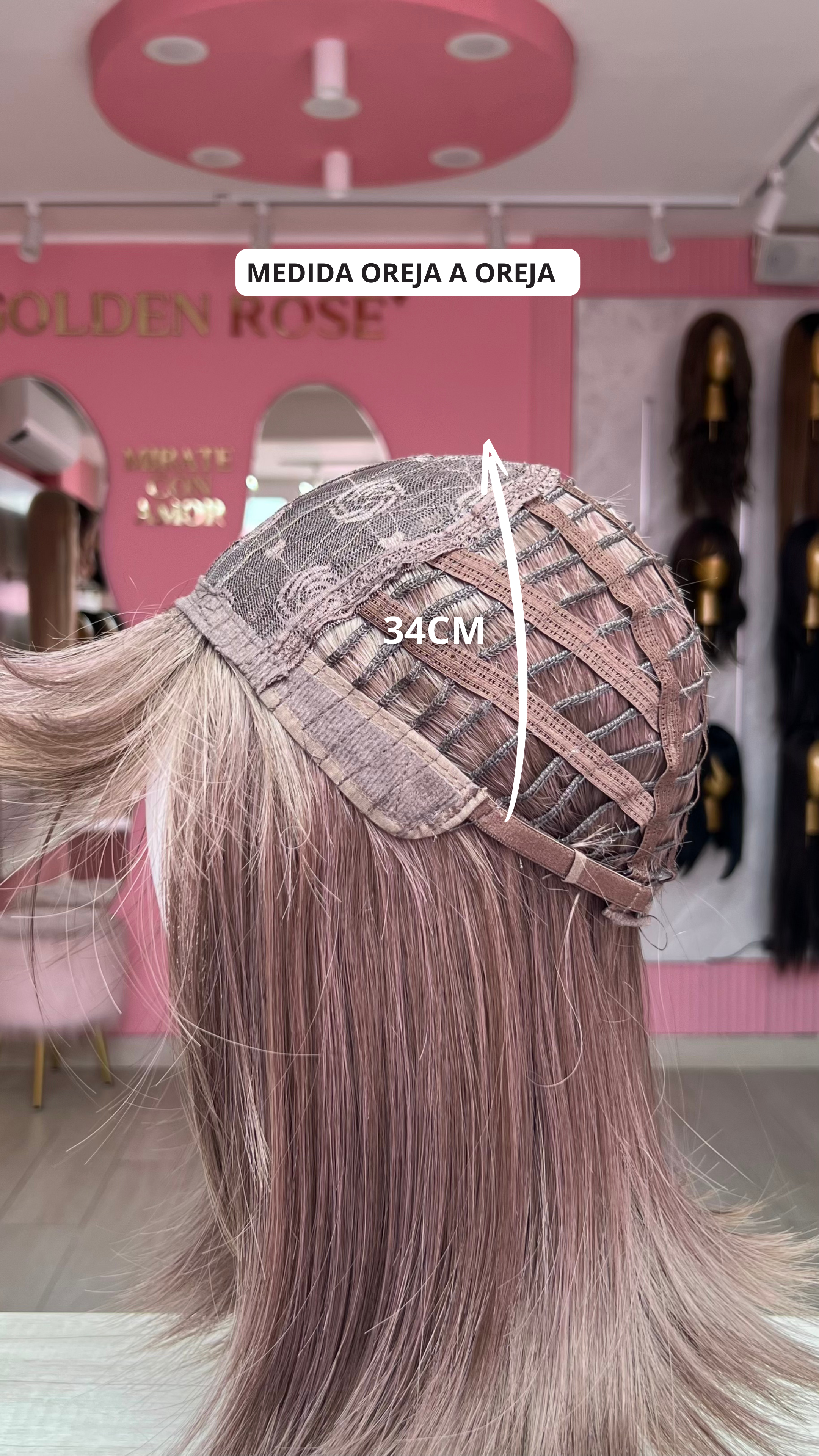La peluca Lilah es un producto de nuestra línea "Golden" con gorro de costura lace front raíz fija. Este producto cuenta con un regulador de contorno para ajustar el tamaño de la peluca si la persona lo requiere, además de 3 peinetas internas para asegurar mejor el cabello (en caso se tenga). El cabello empleado para este postizo es del material modacrílico (un tipo de fibra acrílica). Esta fibra es resistente al agua y al calor, no tiene brillo como el cabello de muñeca, sino que se asemeja a un cabello natural. Asimismo, es suave y manejable, se puede alisar, ondular y lavar. Se recomienda su uso para ocasiones esporádicas con la finalidad de alargar su tiempo de vida.