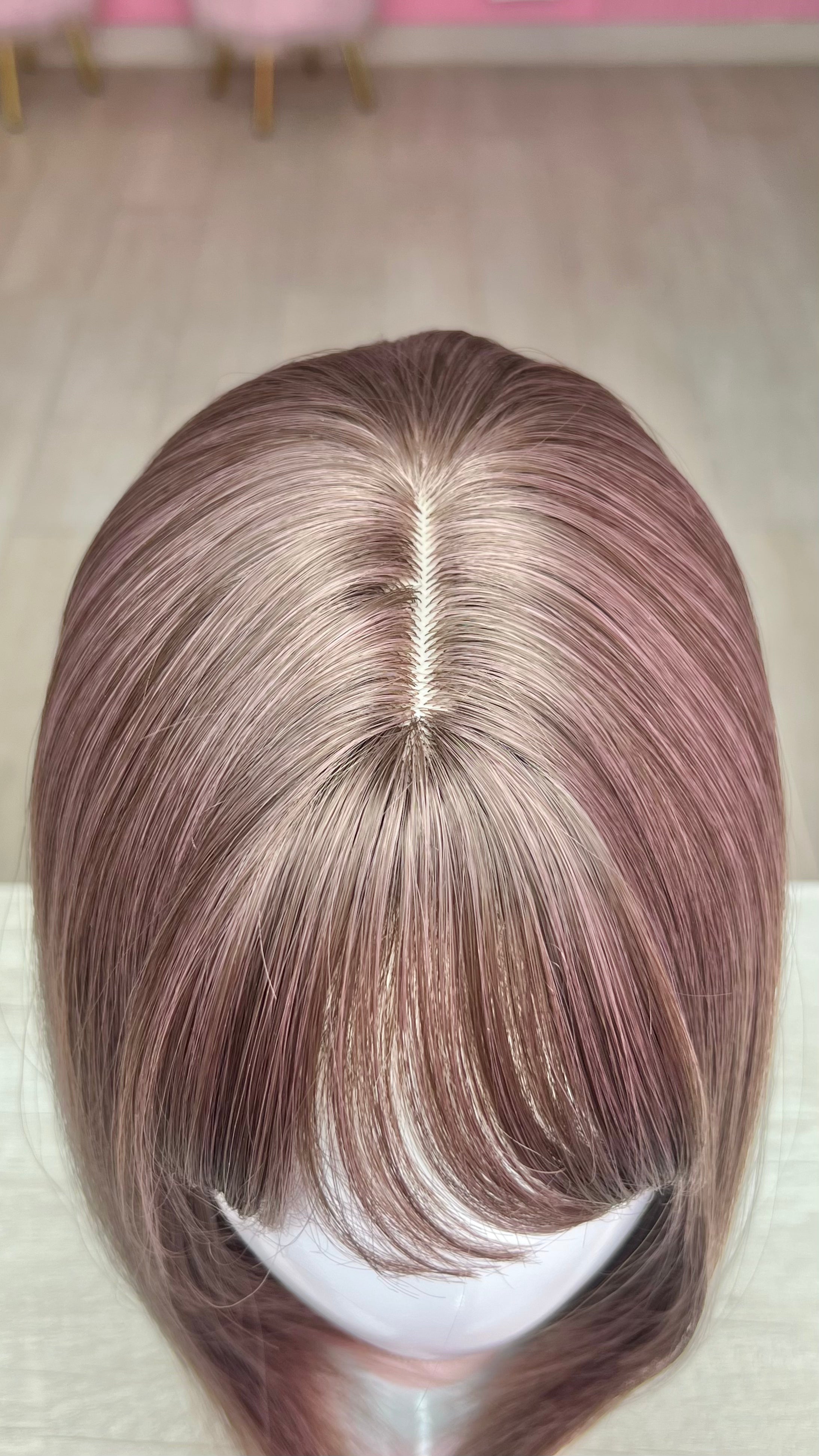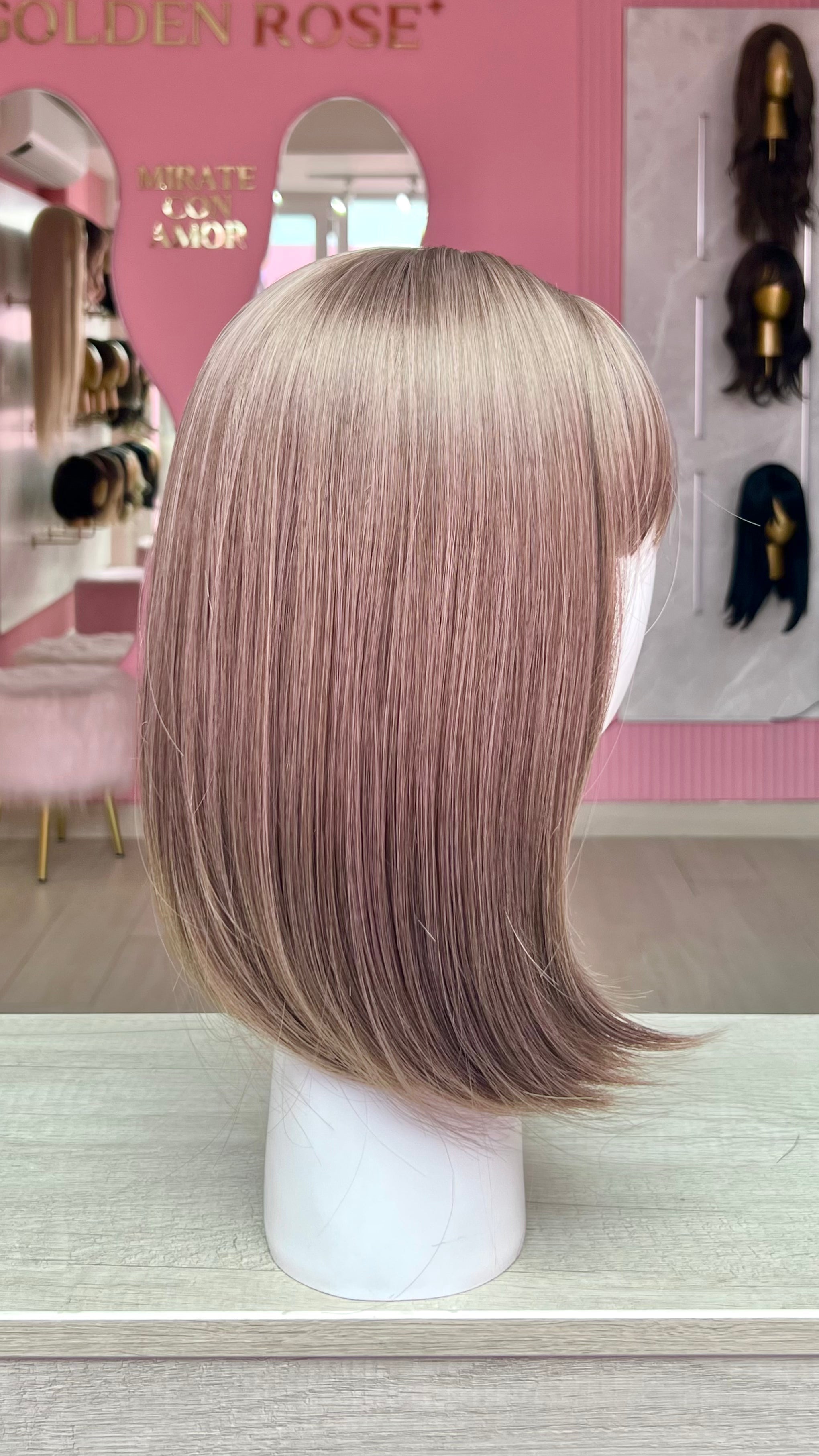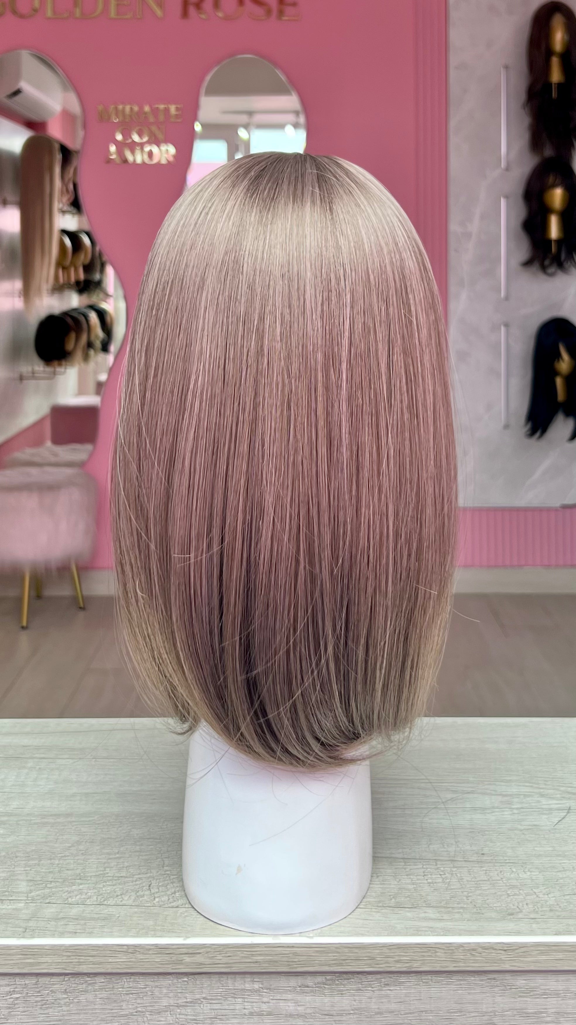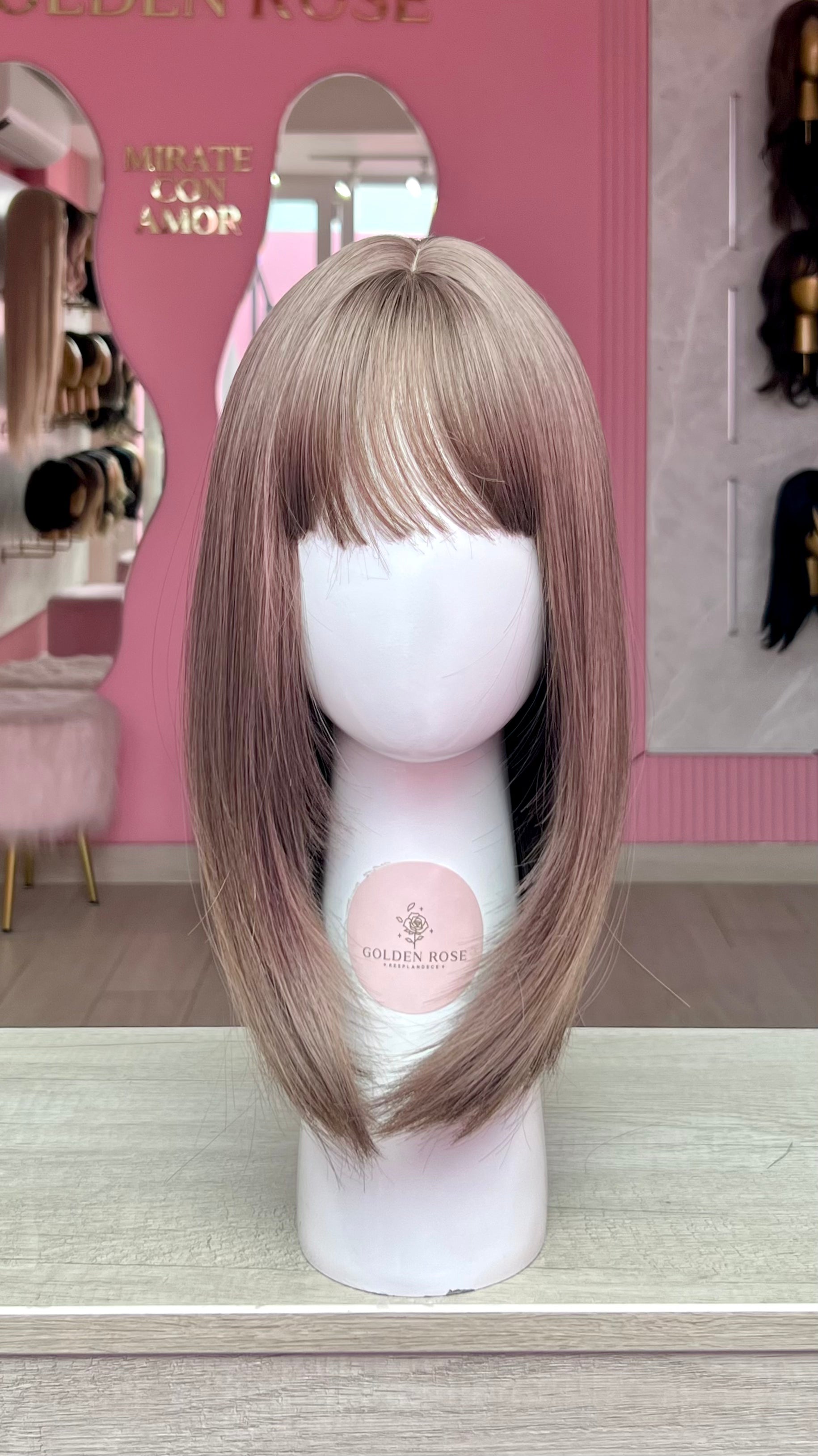 La peluca Lilah es un producto de nuestra línea "Golden" con gorro de costura lace front raíz fija. Este producto cuenta con un regulador de contorno para ajustar el tamaño de la peluca si la persona lo requiere, además de 3 peinetas internas para asegurar mejor el cabello (en caso se tenga). El cabello empleado para este postizo es del material modacrílico (un tipo de fibra acrílica). Esta fibra es resistente al agua y al calor, no tiene brillo como el cabello de muñeca, sino que se asemeja a un cabello natural. Asimismo, es suave y manejable, se puede alisar, ondular y lavar. Se recomienda su uso para ocasiones esporádicas con la finalidad de alargar su tiempo de vida.