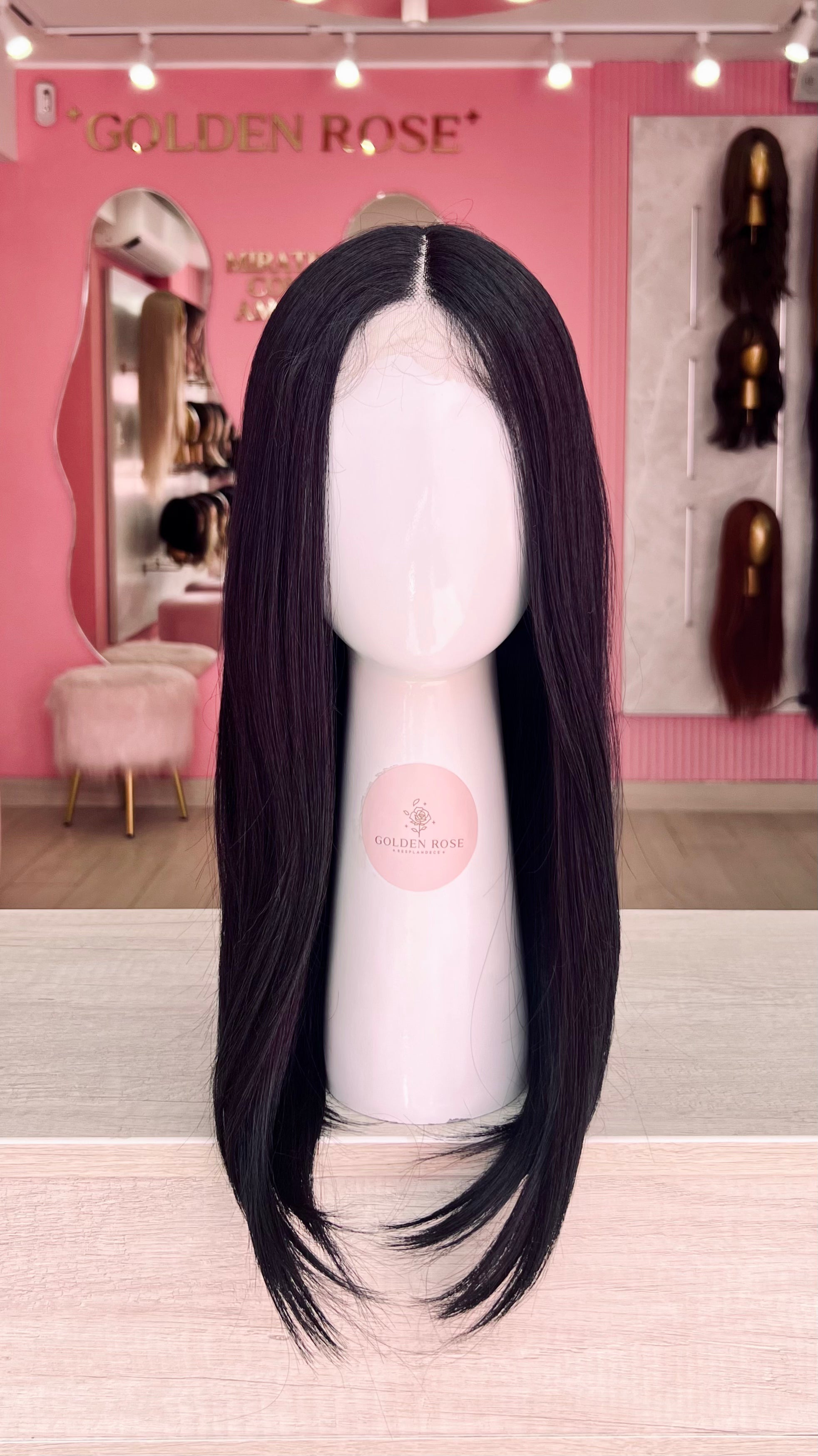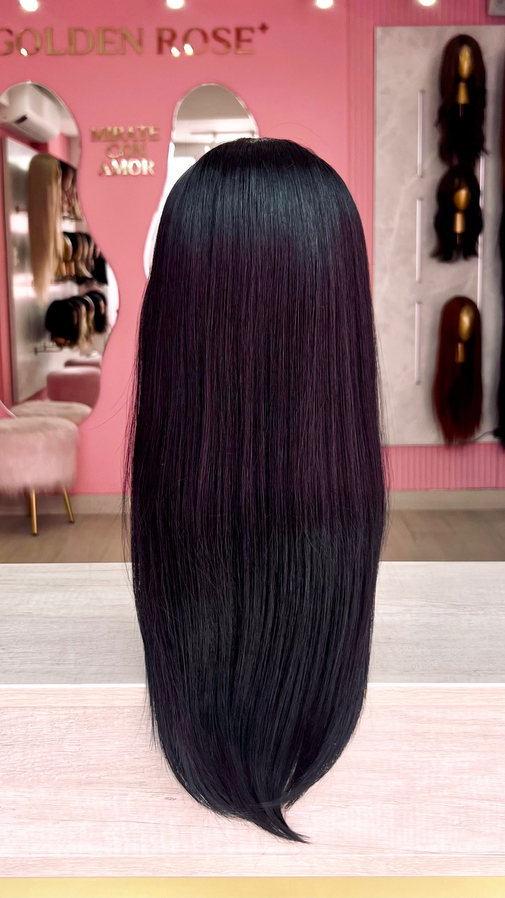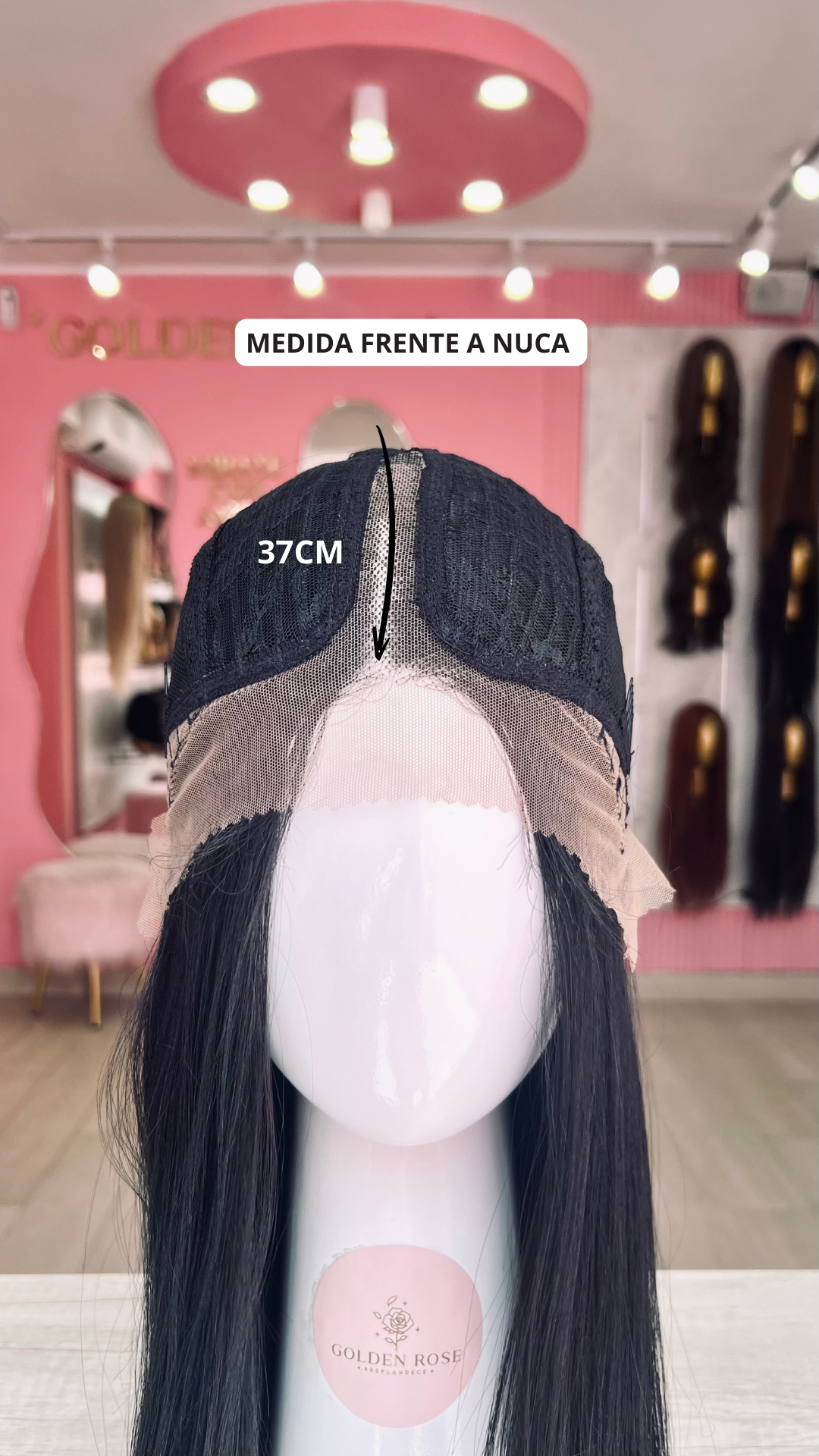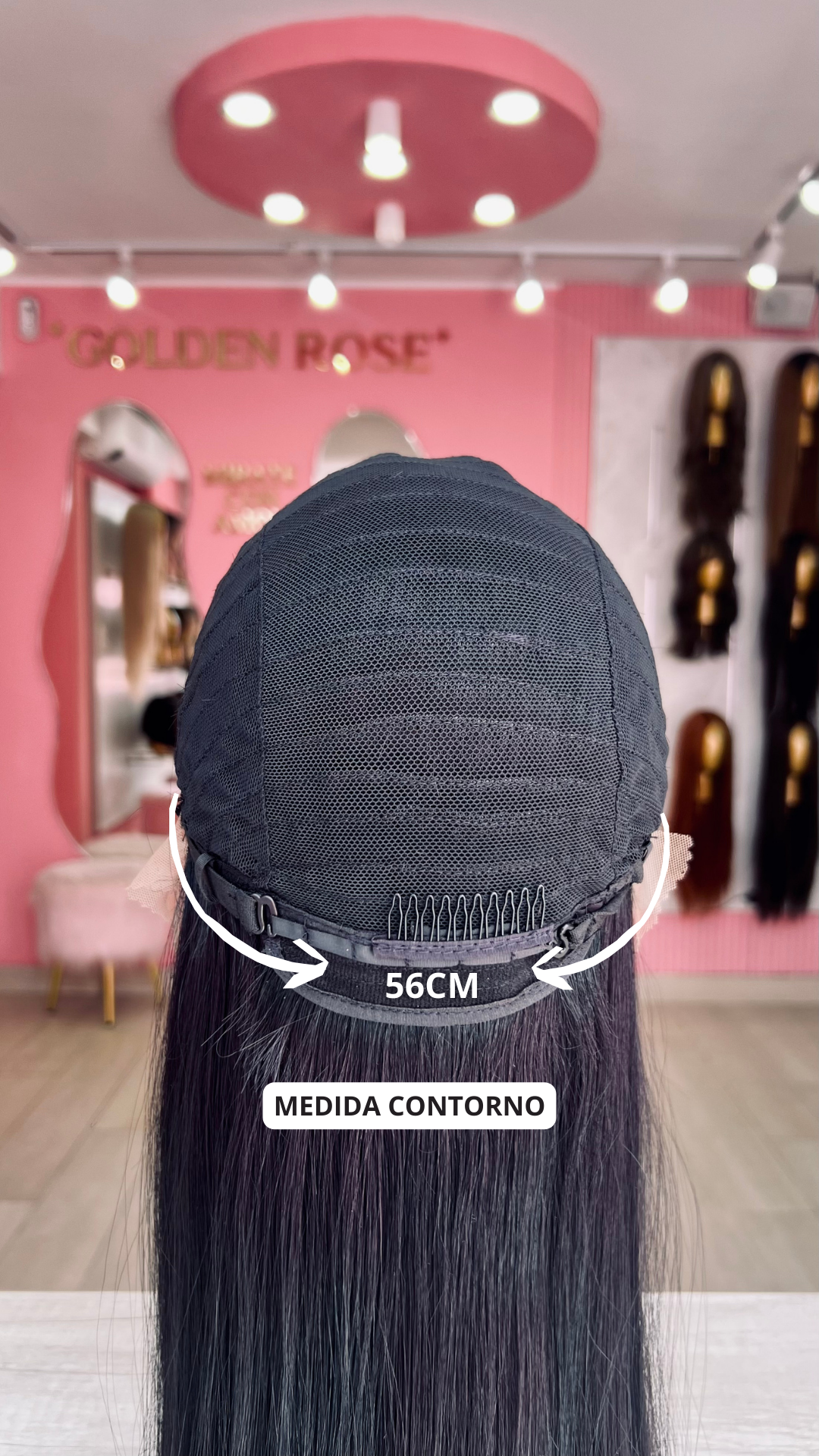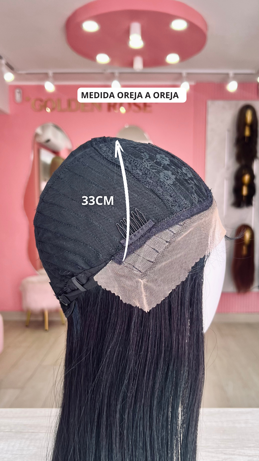 La peluca Rebeca es un producto de nuestra línea "Golden" con gorro de costura lace front raíz fija. Este producto cuenta con un regulador de contorno para ajustar el tamaño de la peluca si la persona lo requiere, además de 3 peinetas internas para asegurar mejor el cabello (en caso se tenga). El cabello empleado para este postizo es del material modacrílico (un tipo de fibra acrílica). Esta fibra es resistente al agua y al calor, no tiene brillo como el cabello de muñeca, sino que se asemeja a un cabello natural. Asimismo, es suave y manejable, se puede alisar, ondular y lavar. Se recomienda su uso para ocasiones esporádicas con la finalidad de alargar su tiempo de vida.