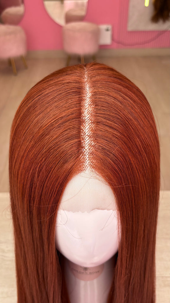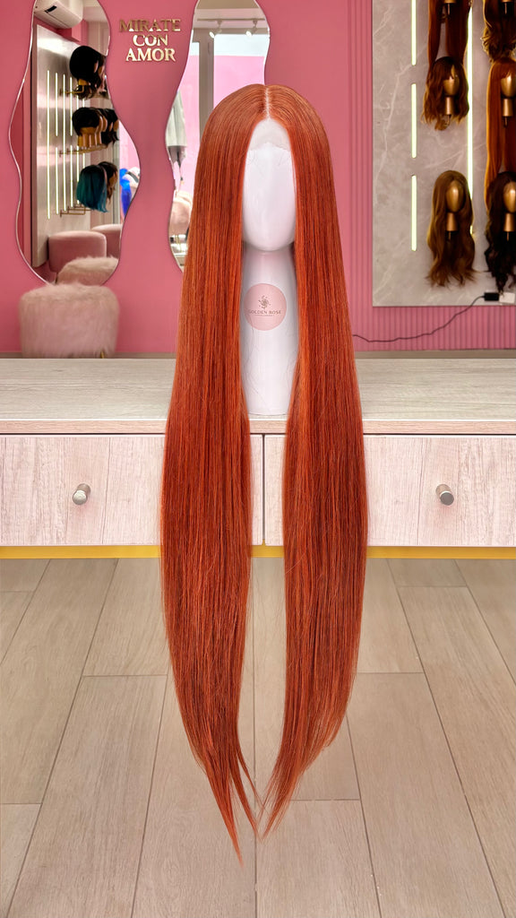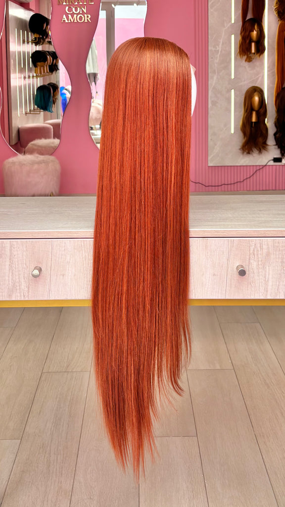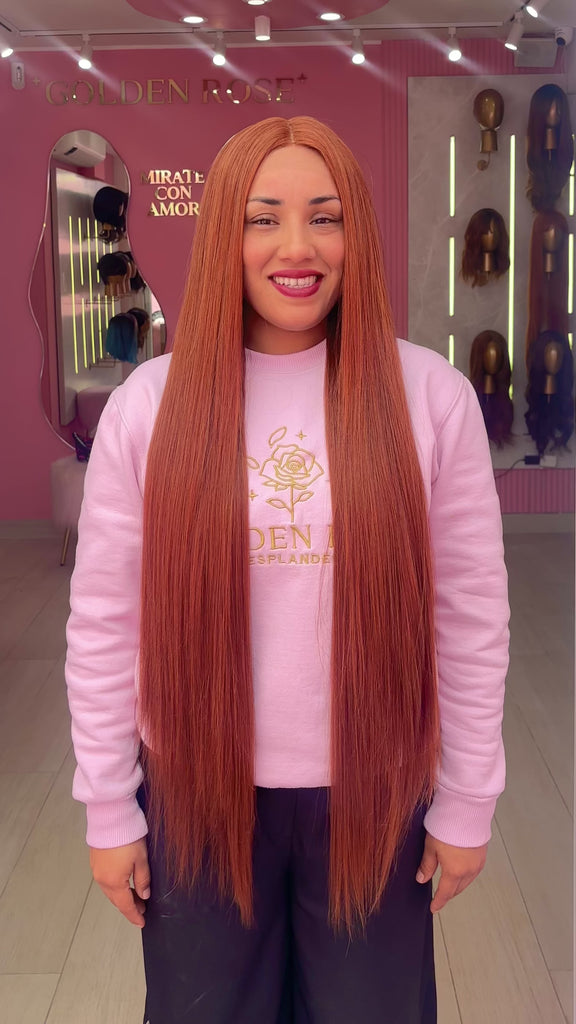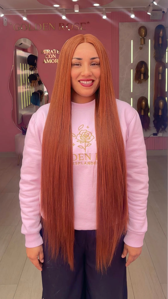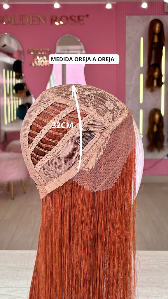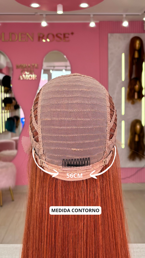 La peluca Amanda es un producto de nuestra línea "Golden" con gorro de costura lace front raíz fija. Este producto cuenta con un regulador de contorno para ajustar el tamaño de la peluca si la persona lo requiere, además de 3 peinetas internas para asegurar mejor el cabello (en caso se tenga). El cabello empleado para este postizo es del material modacrílico (un tipo de fibra acrílica). Esta fibra es resistente al agua y al calor, no tiene brillo como el cabello de muñeca, sino que se asemeja a un cabello natural. Asimismo, es suave y manejable, se puede alisar, ondular y lavar. Se recomienda su uso para ocasiones esporádicas con la finalidad de alargar su tiempo de vida.
