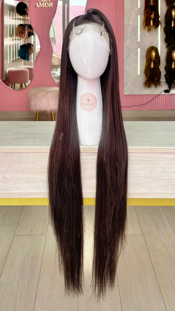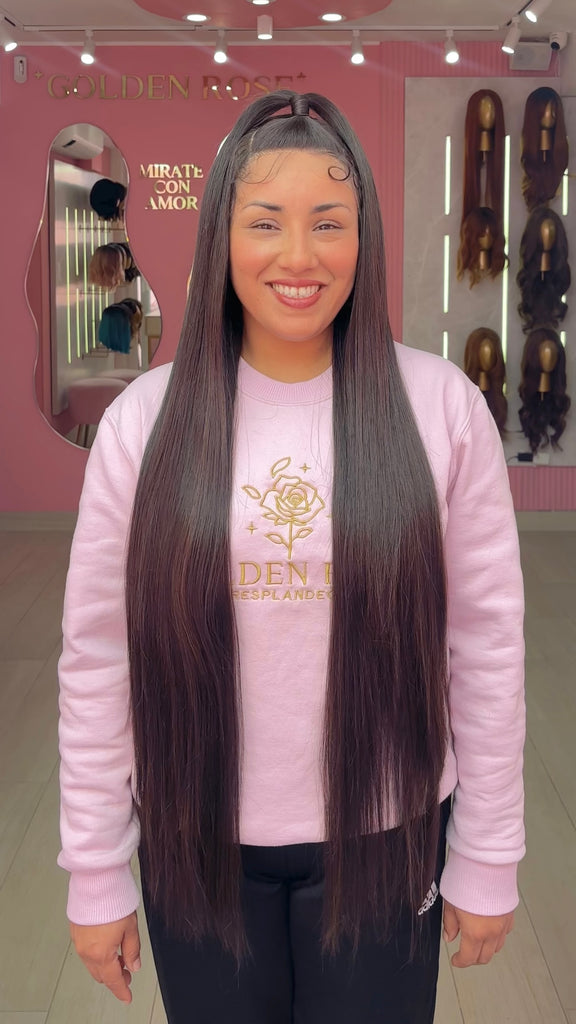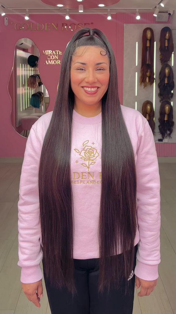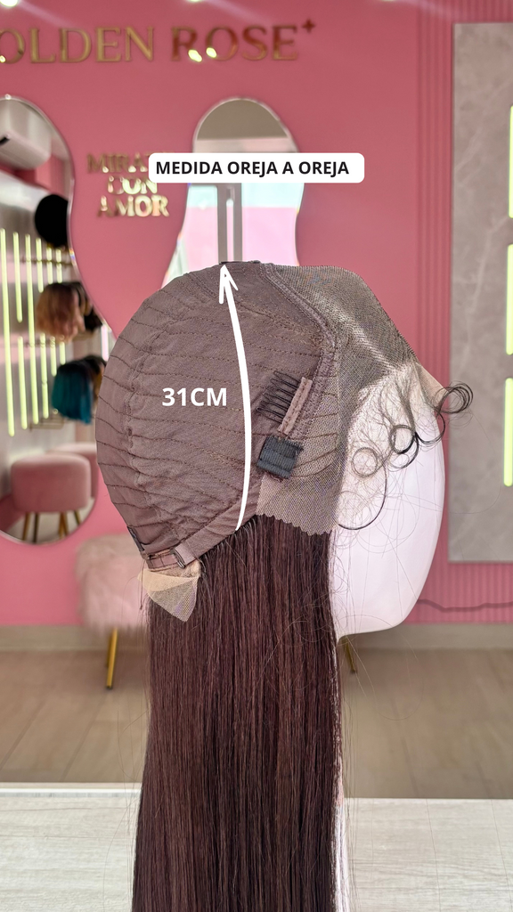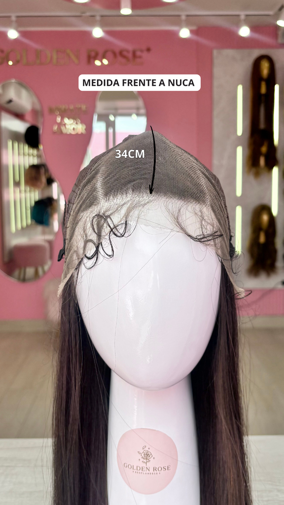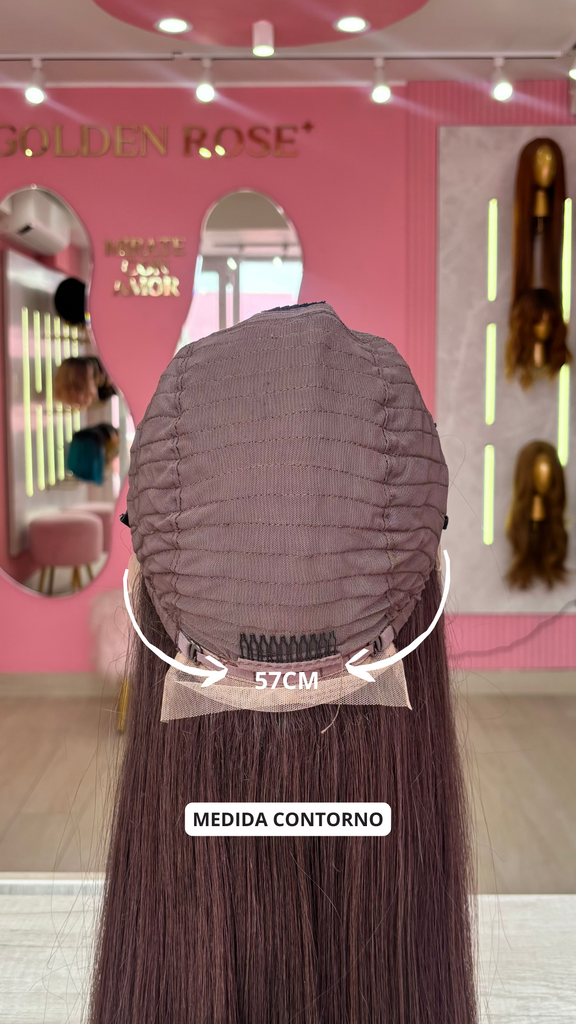 La peluca Blair es un producto de nuestra línea "Golden" con gorro de costura lace front raíz movible. Este producto cuenta con un regulador de contorno para ajustar el tamaño de la peluca si la persona lo requiere, además de 3 peinetas internas para asegurar mejor el cabello (en caso se tenga). El cabello empleado para este postizo es del material modacrílico (un tipo de fibra acrílica). Esta fibra es resistente al agua y al calor, no tiene brillo como el cabello de muñeca, sino que se asemeja a un cabello natural. Asimismo, es suave y manejable, se puede alisar, ondular y lavar. Se recomienda su uso para ocasiones esporádicas con la finalidad de alargar su tiempo de vida.