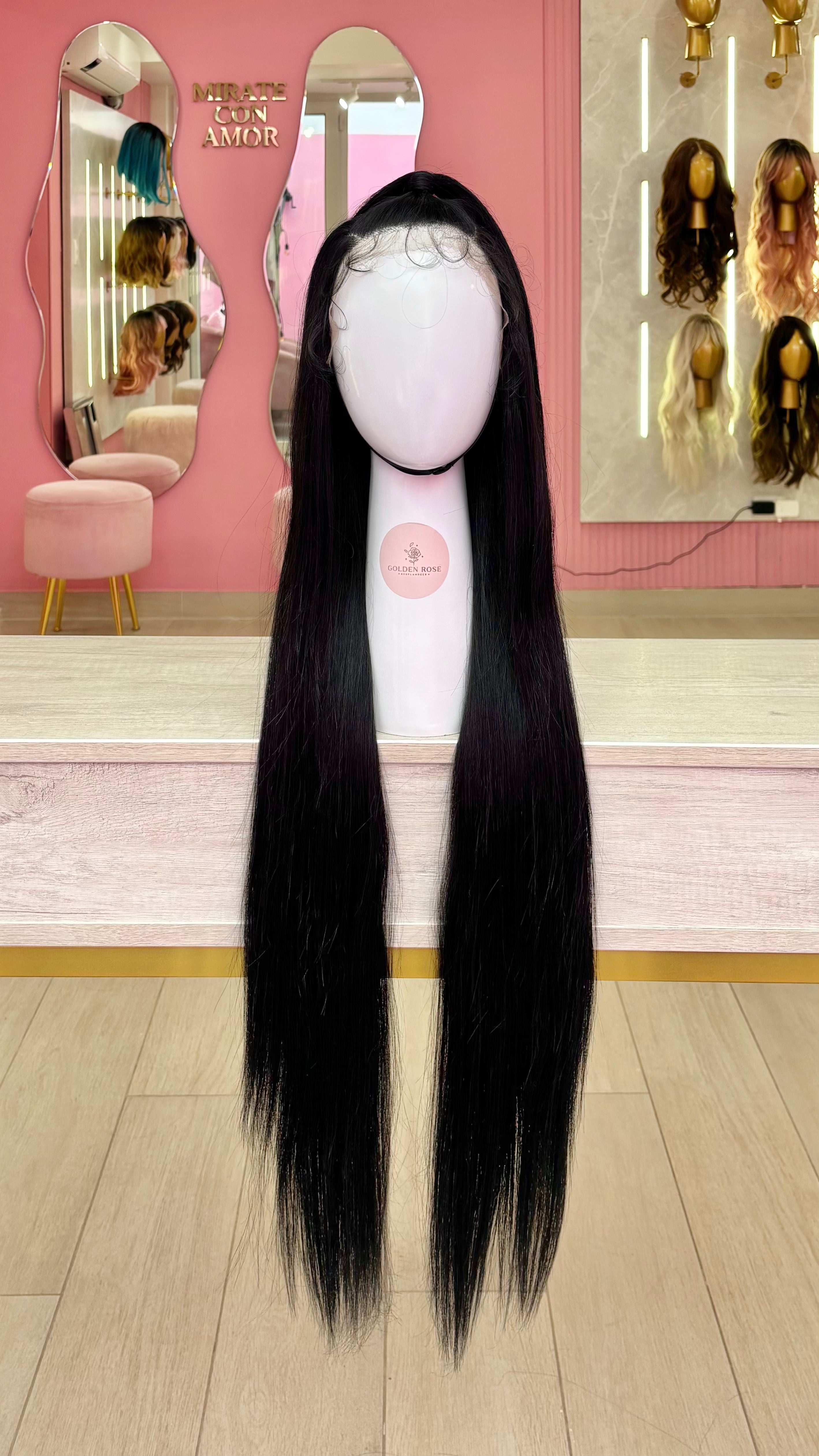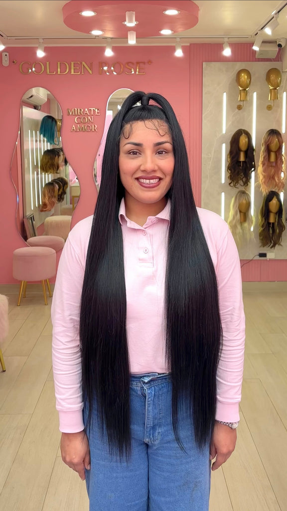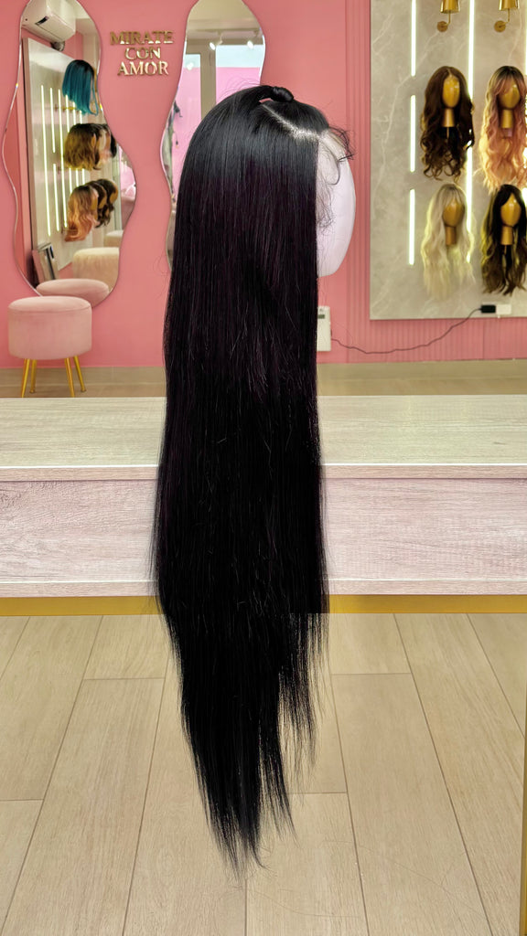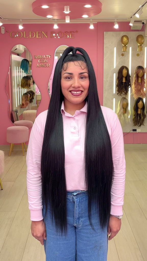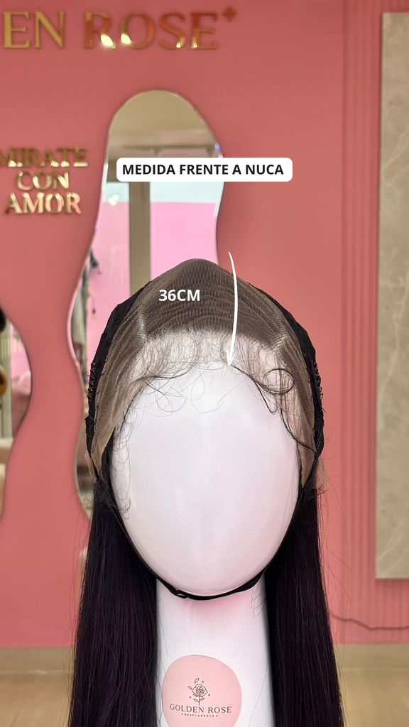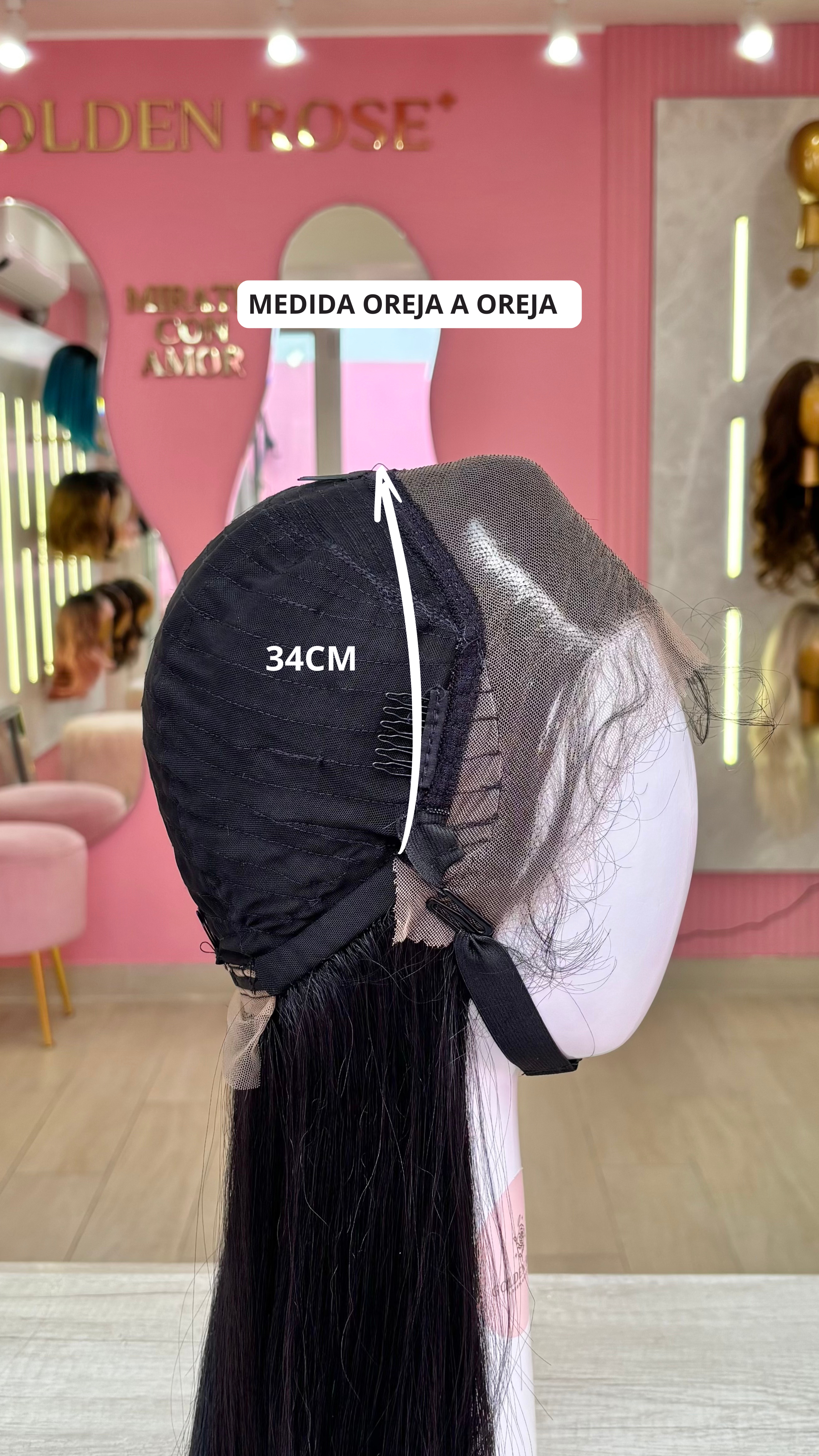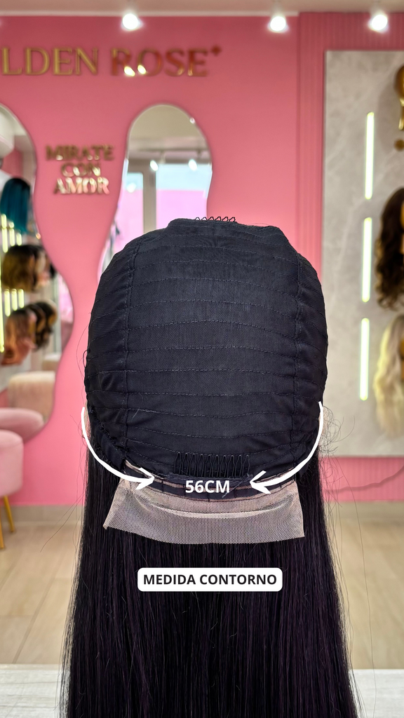 La peluca Blair es un producto de nuestra línea "Golden" con gorro de costura lace front raíz movible. Este producto cuenta con un regulador de contorno para ajustar el tamaño de la peluca si la persona lo requiere, además de 3 peinetas internas para asegurar mejor el cabello (en caso se tenga). El cabello empleado para este postizo es del material modacrílico (un tipo de fibra acrílica). Esta fibra es resistente al agua y al calor, no tiene brillo como el cabello de muñeca, sino que se asemeja a un cabello natural. Asimismo, es suave y manejable, se puede alisar, ondular y lavar. Se recomienda su uso para ocasiones esporádicas con la finalidad de alargar su tiempo de vida.