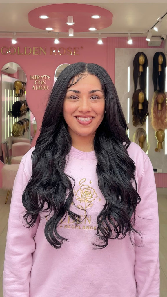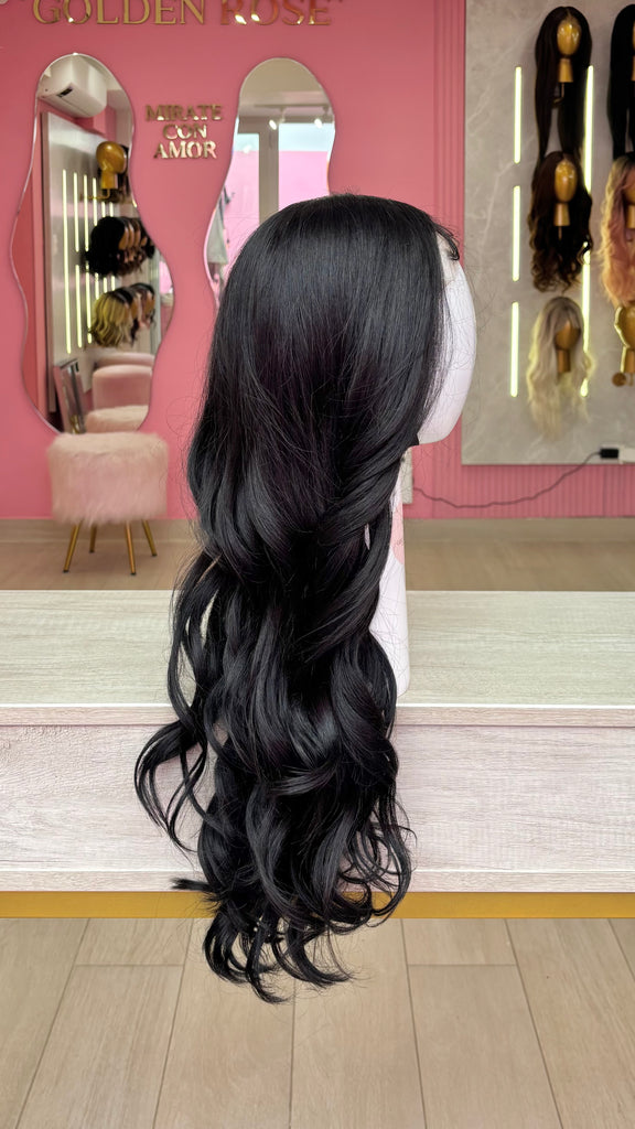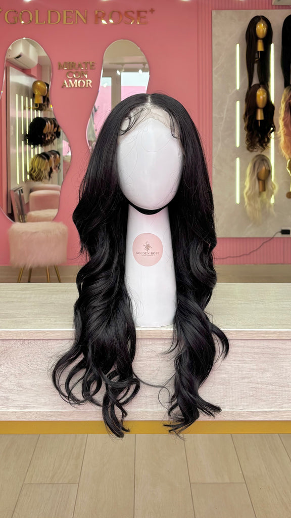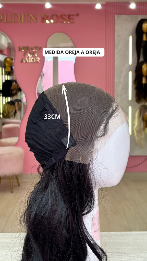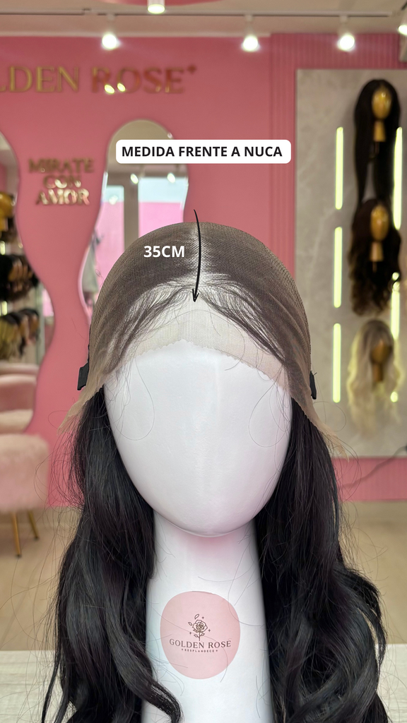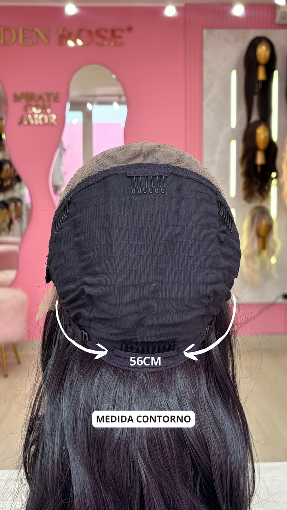 La peluca Elizabeth es un producto de nuestra línea "Golden" con gorro de costura lace front raíz movible. Este producto cuenta con un regulador de contorno para ajustar el tamaño de la peluca si la persona lo requiere, además de 3 peinetas internas para asegurar mejor el cabello (en caso se tenga). El cabello empleado para este postizo es del material modacrílico (un tipo de fibra acrílica). Esta fibra es resistente al agua y al calor, no tiene brillo como el cabello de muñeca, sino que se asemeja a un cabello natural. Asimismo, es suave y manejable, se puede alisar, ondular y lavar. Se recomienda su uso para ocasiones esporádicas con la finalidad de alargar su tiempo de vida.