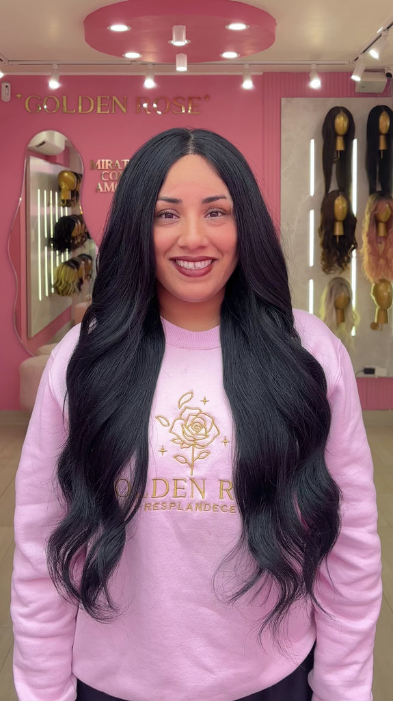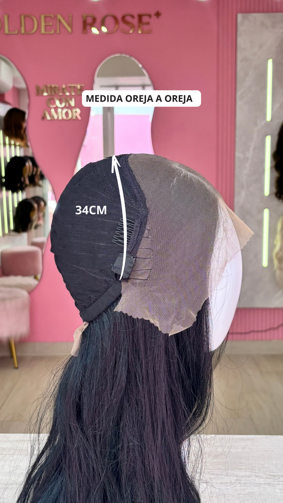 La peluca Kenny es un producto de nuestra línea "Golden" con gorro de costura lace front raíz movible. Este producto cuenta con un regulador de contorno para ajustar el tamaño de la peluca si la persona lo requiere, además de 3 peinetas internas para asegurar mejor el cabello (en caso se tenga). El cabello empleado para este postizo es del material modacrílico (un tipo de fibra acrílica). Esta fibra es resistente al agua y al calor, no tiene brillo como el cabello de muñeca, sino que se asemeja a un cabello natural. Asimismo, es suave y manejable, se puede alisar, ondular y lavar. Se recomienda su uso para ocasiones esporádicas con la finalidad de alargar su tiempo de vida.