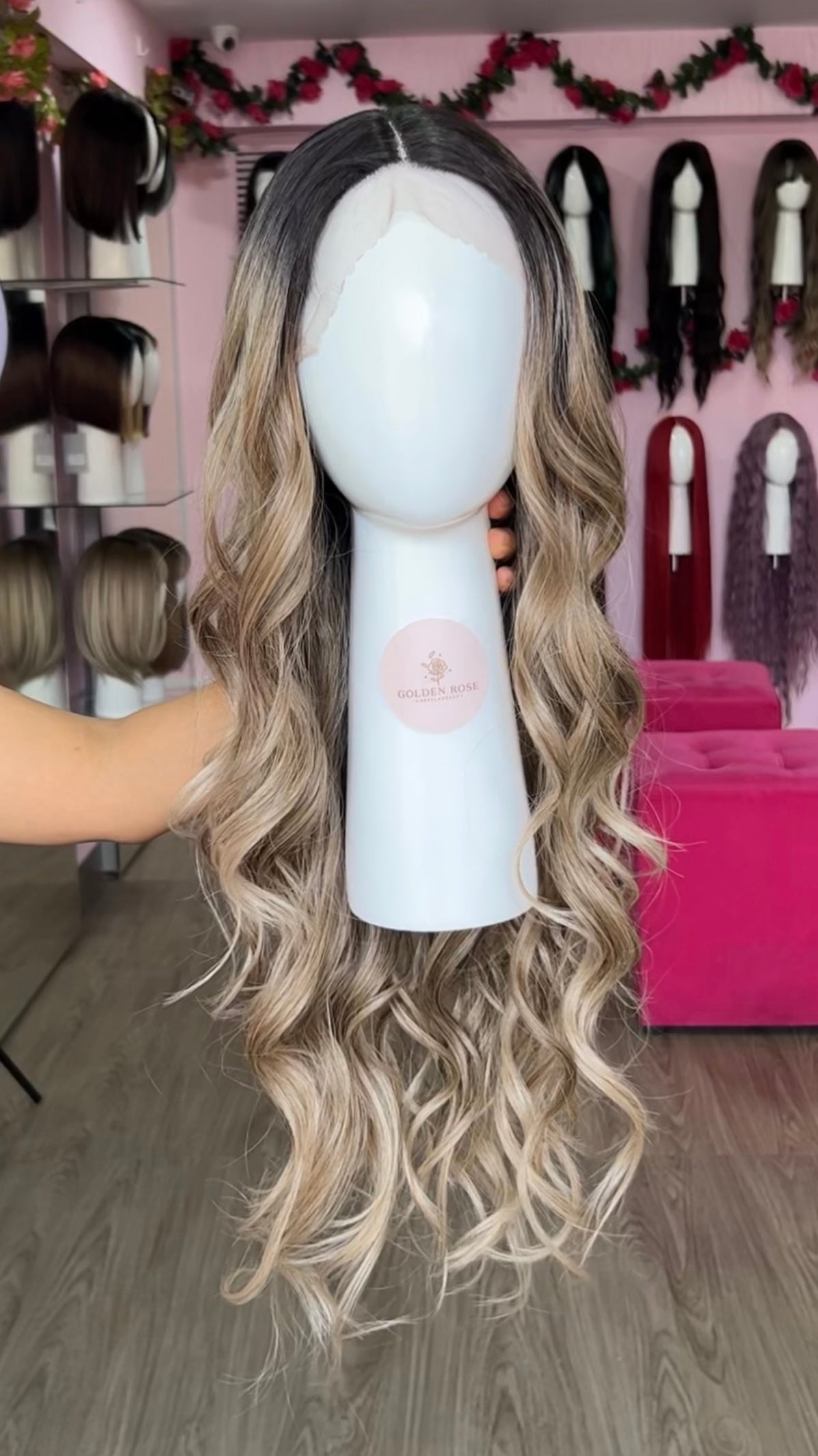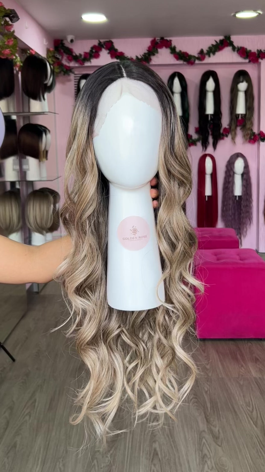 La peluca Luana es un producto de nuestra línea "Golden" con gorro de costura lace front raíz fija. Este producto cuenta con un regulador de contorno para ajustar el tamaño de la peluca si la persona lo requiere, además de 3 peinetas internas para asegurar mejor el cabello (en caso se tenga). El cabello empleado para este postizo es del material modacrílico (un tipo de fibra acrílica). Esta fibra es resistente al agua y al calor, no tiene brillo como el cabello de muñeca, sino que se asemeja a un cabello natural. Asimismo, es suave y manejable, se puede alisar, ondular y lavar. Se recomienda su uso para ocasiones esporádicas con la finalidad de alargar su tiempo de vida.