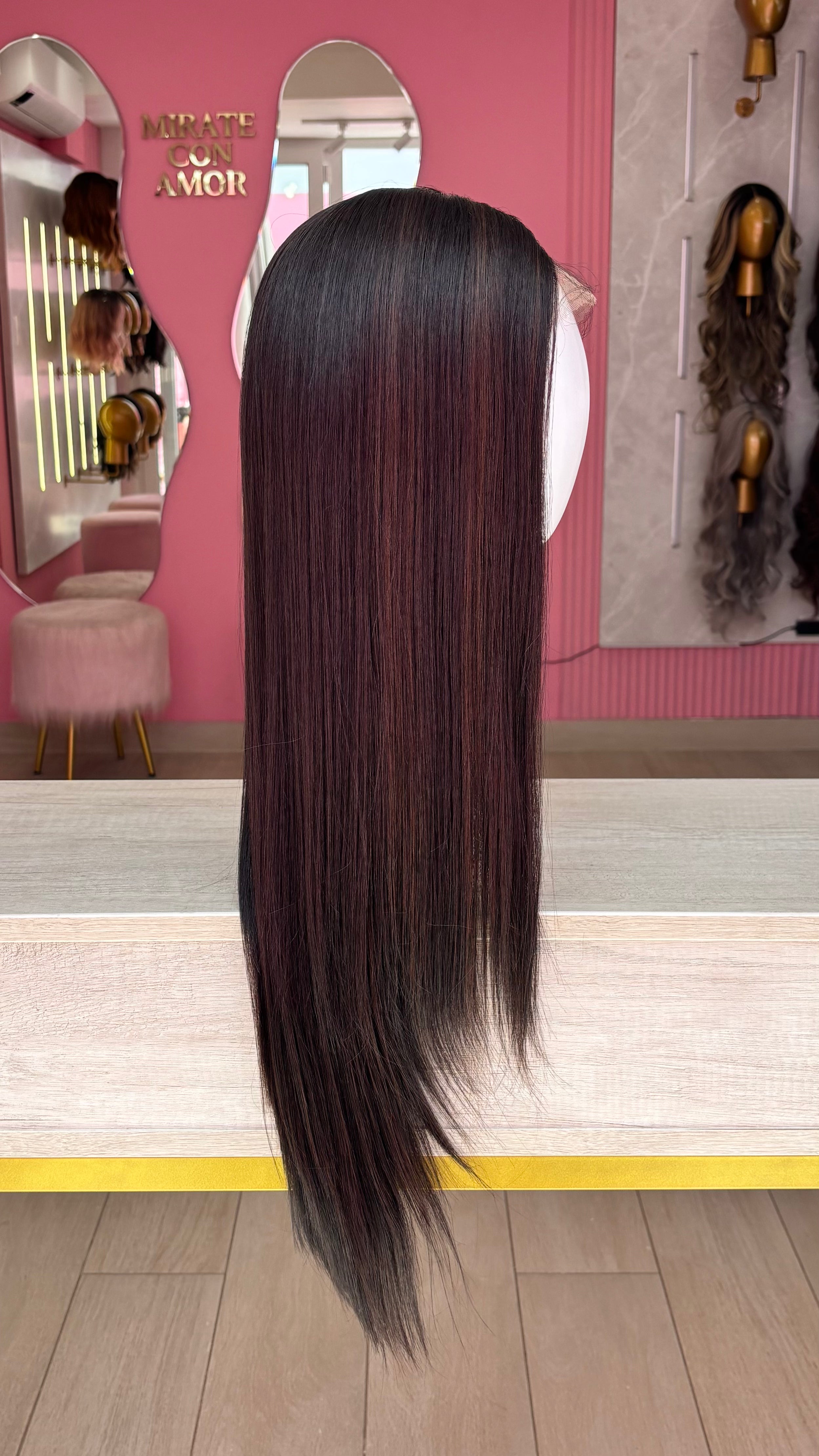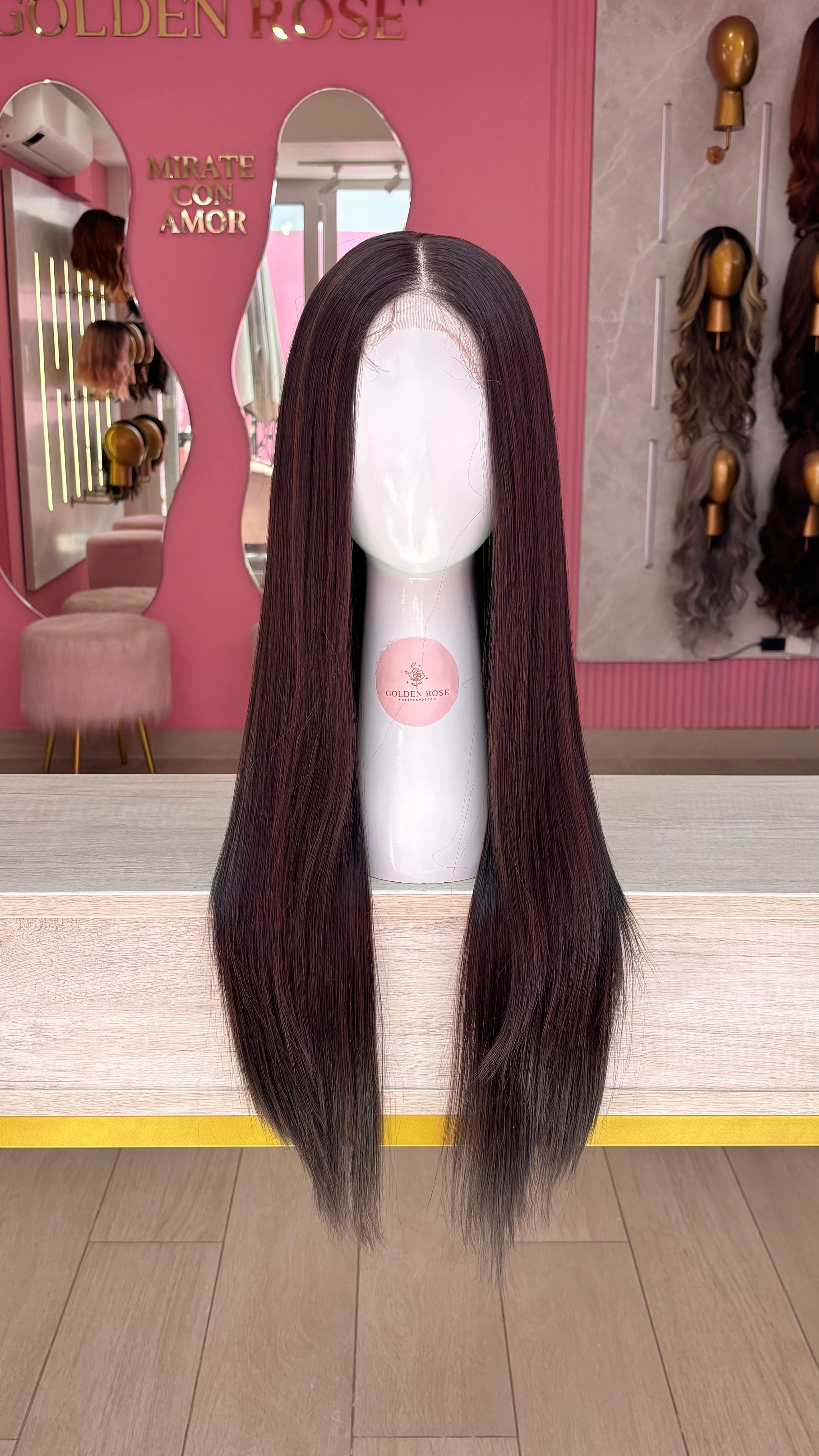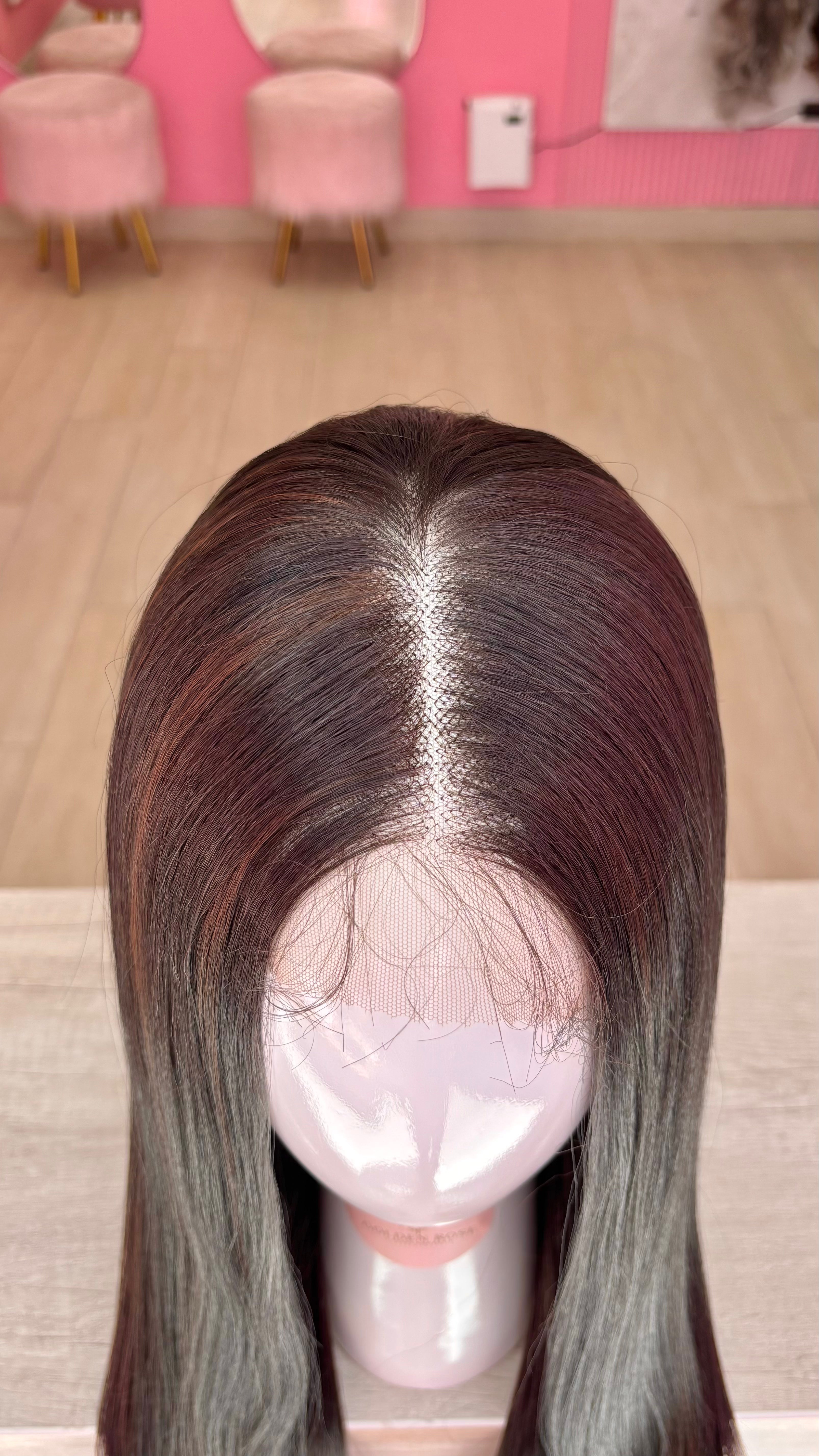 La peluca Musa es un producto de nuestra línea "Golden" con gorro de costura lace front raíz movible. Este producto cuenta con un regulador de contorno para ajustar el tamaño de la peluca si la persona lo requiere, además de 3 peinetas internas para asegurar mejor el cabello (en caso se tenga). El cabello empleado para este postizo es del material modacrílico (un tipo de fibra acrílica). Esta fibra es resistente al agua y al calor, no tiene brillo como el cabello de muñeca, sino que se asemeja a un cabello natural. Asimismo, es suave y manejable, se puede alisar, ondular y lavar. Se recomienda su uso para ocasiones esporádicas con la finalidad de alargar su tiempo de vida.