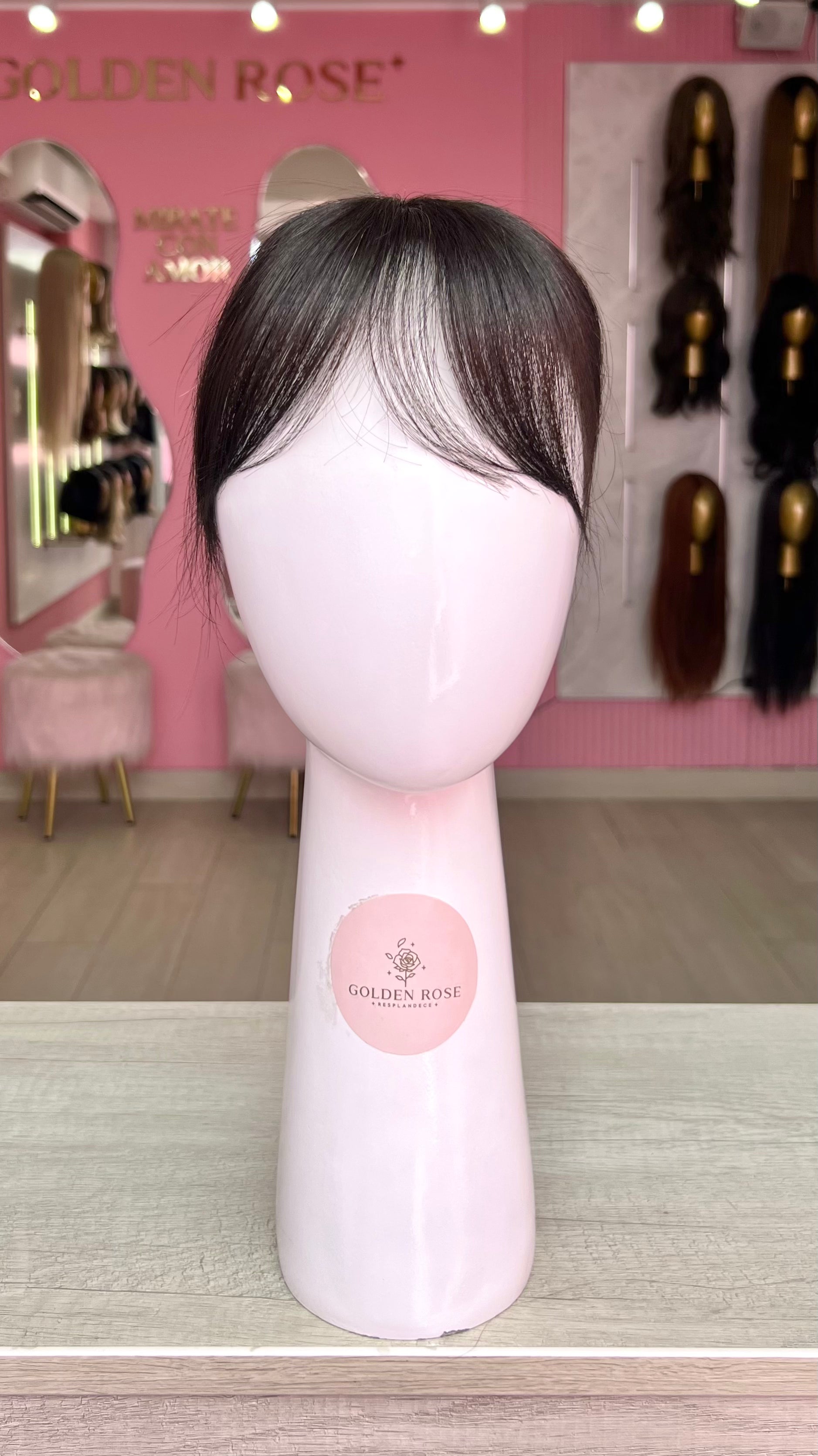 El Cerquillo topper Noa es un producto de nuestra línea "Platinum", con raíz movible cuero cabelludo. El cabello empleado para este postizo es 100% humano; por lo cual, es apto para uso diario. El cabello es suave y manejable; además se puede alisar, ondular, lavar y teñir de tonos más oscuros del que viene de fábrica. Si desea que el cabello se vea liso, puede hacerle un cepillado con secadora y peine redondo. Se aconseja usar un protector de calor cuando se va emplear tenaza o plancha o secador con aire caliente.