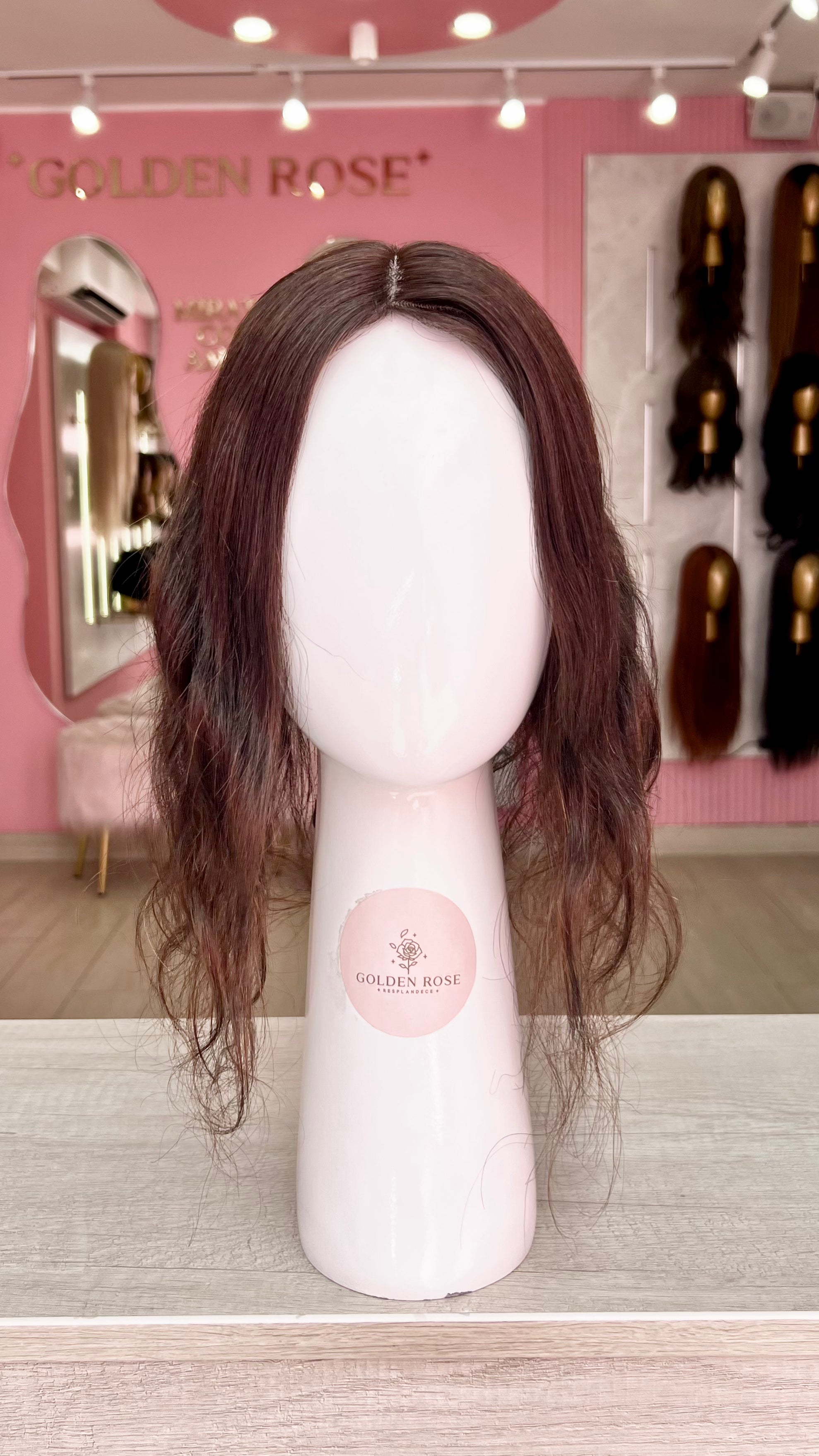 El topper Ana es un producto de nuestra línea "Platinum", con raíz movible cuero cabelludo. El cabello empleado para este postizo es 100% humano; por lo cual, es apto para uso diario. El cabello es suave y manejable; además se puede ondular, lavar, cepillar y teñir de tonos más oscuros del que viene de fábrica. No se recomienda decolorar, pues tiene un procedimiento previo de ondulación permanente. En caso se decolore, el cabello se puede maltratar y/o resecar. Asimismo, para definir mejor los rizos, puede usar crema de peinar o ruleros. Si desea que el cabello se vea liso, puede hacerle un cepillado con secadora y peine redondo. Se aconseja no emplear tenaza o plancha porque puede resecar el cabello.