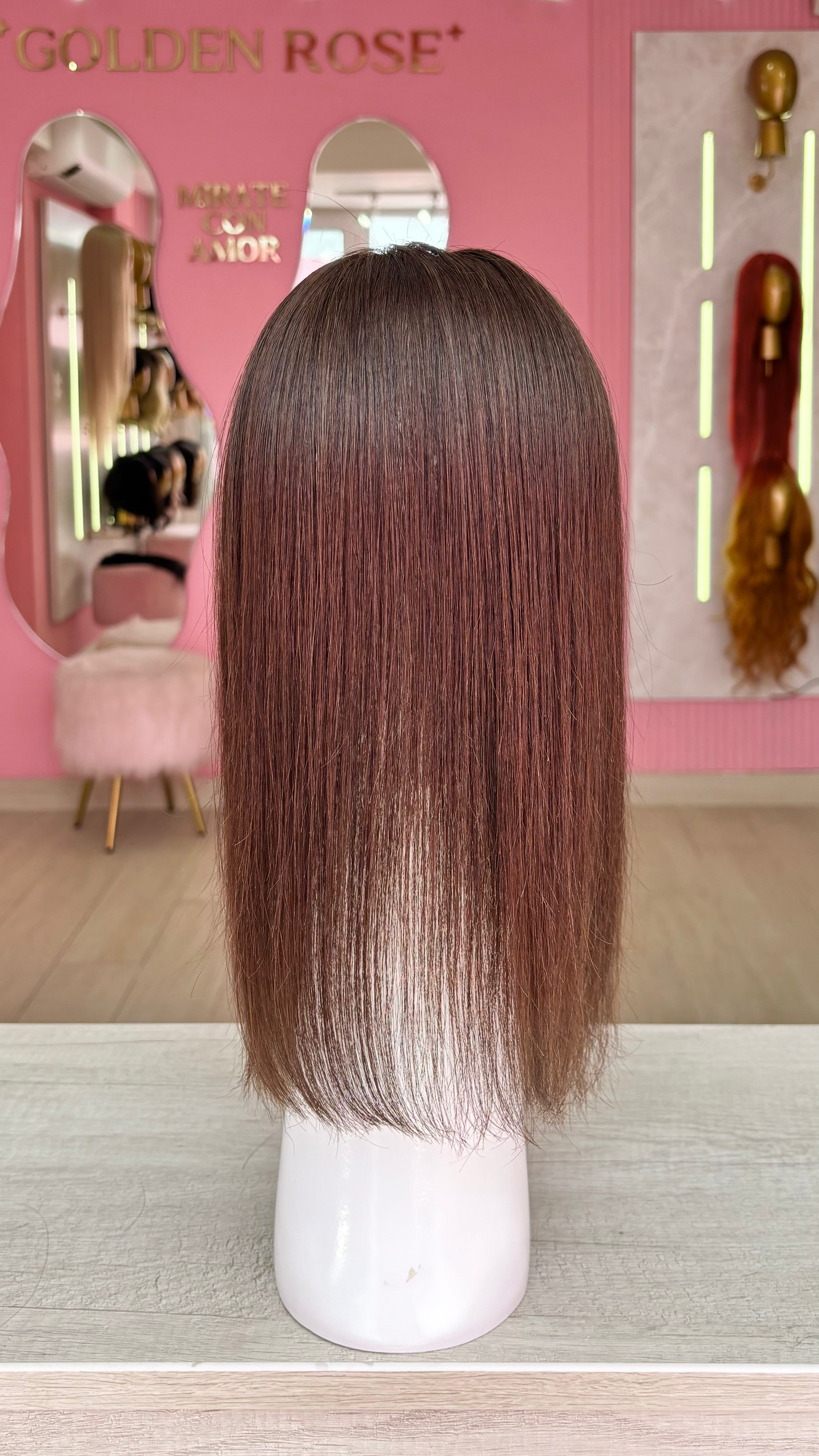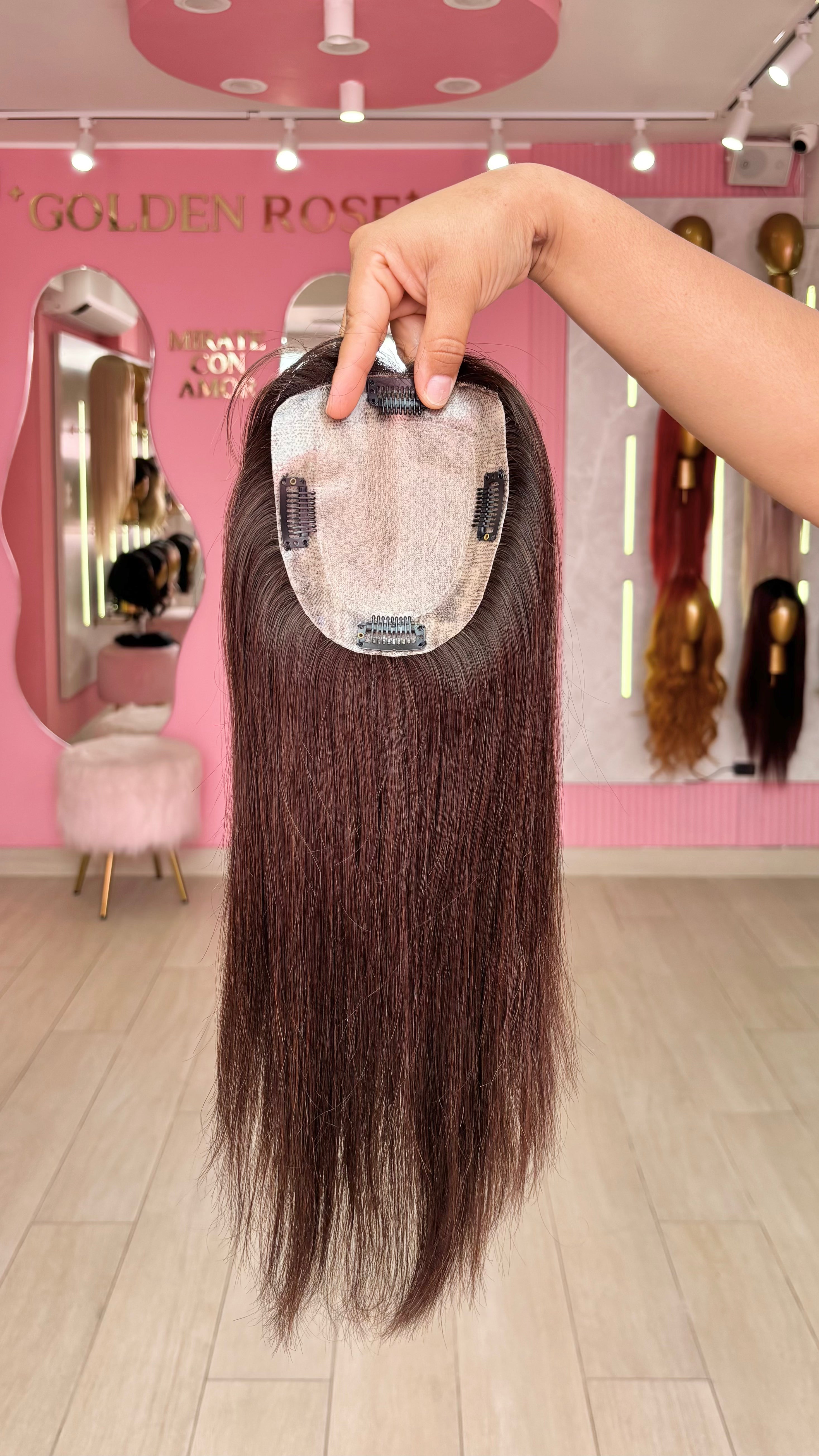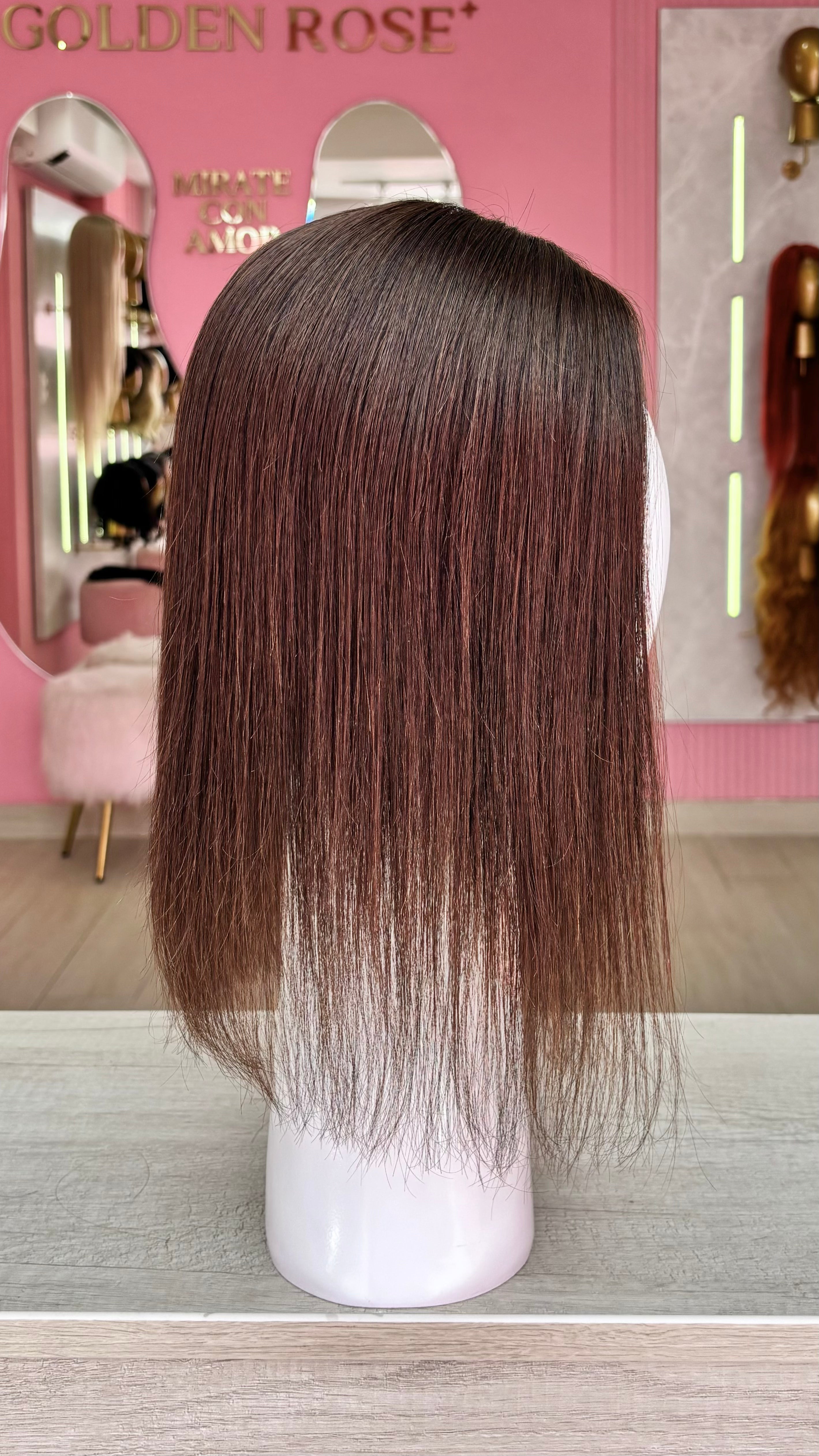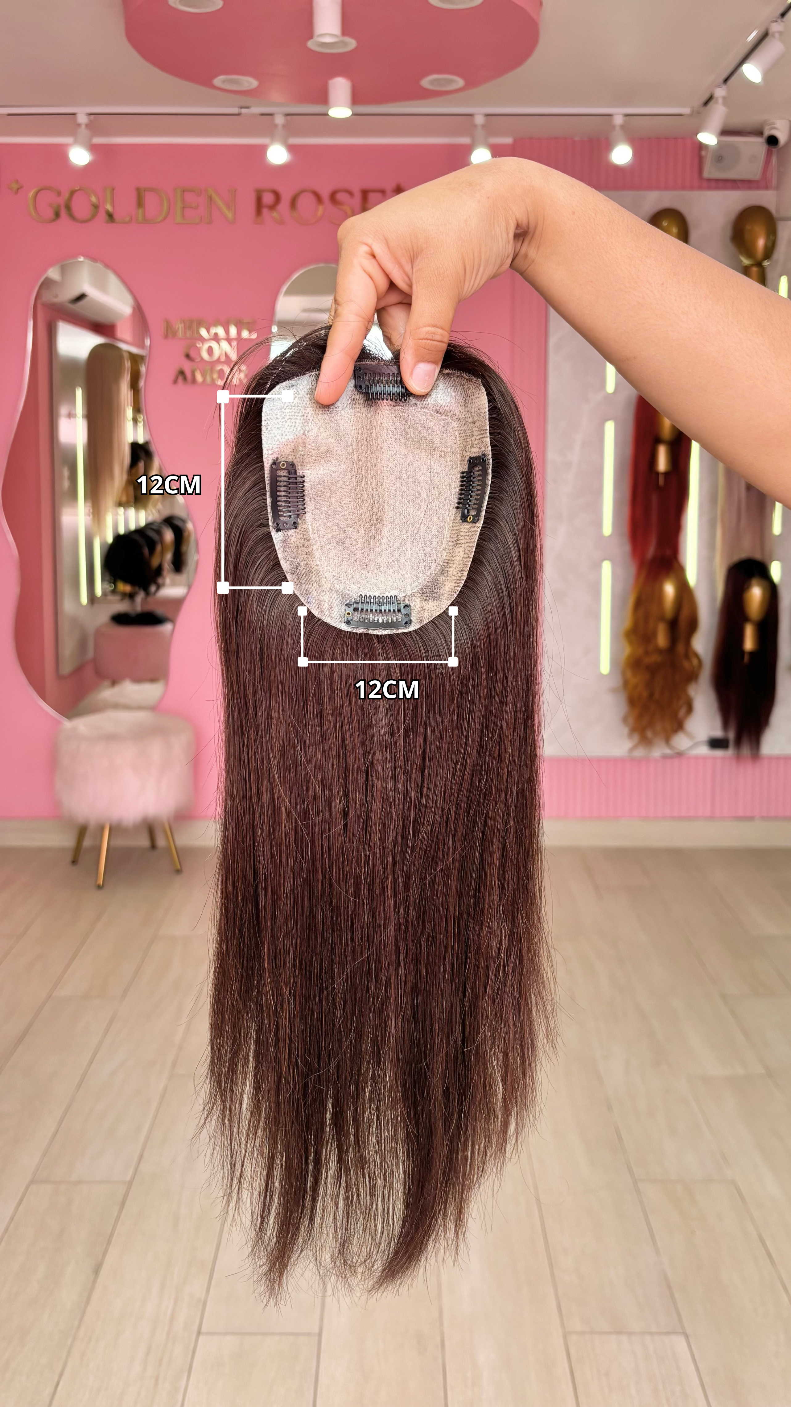 El topper Fiorella es un producto de nuestra línea "Platinum", con raíz movible cuero cabelludo. El cabello empleado para este postizo es 100% humano; por lo cual, es apto para uso diario. El cabello es suave y manejable; además se puede alisar, ondular, lavar, cepillar y teñir de tonos más oscuros del que viene de fábrica. No se recomienda decolorar, pues tiene un procedimiento previo de alisado permanente. En caso se decolore, el cabello se puede maltratar y/o resecar. Asimismo, es ideal emplear ruleros para ondular el cabello ya que debido a su alisado permanente, puede resecarse si se emplea tenaza o plancha para generar ondas. En el caso del planchado, se puede realizar sin inconveniente manteniendo una temperatura prudente en la máquina (como máximo 300 grados centígrados).